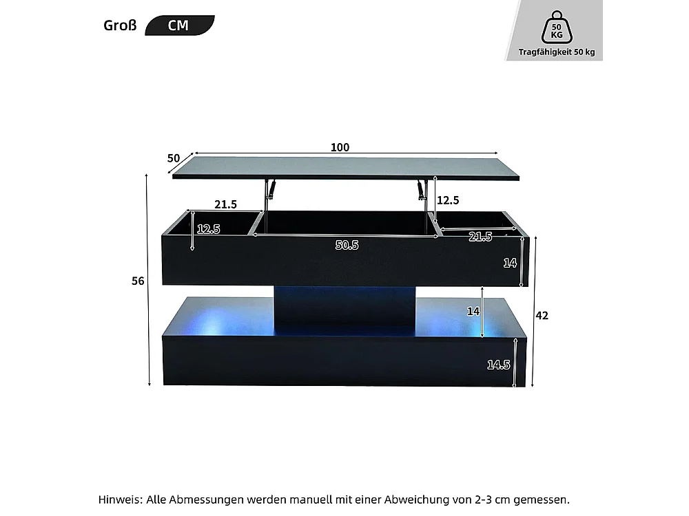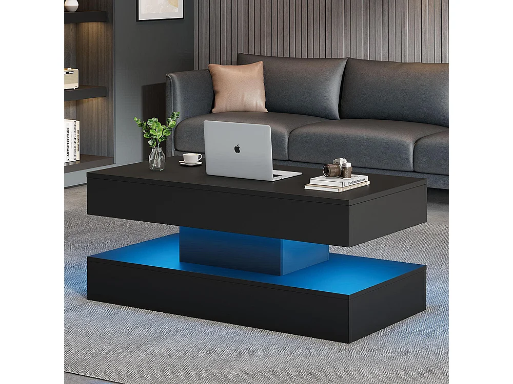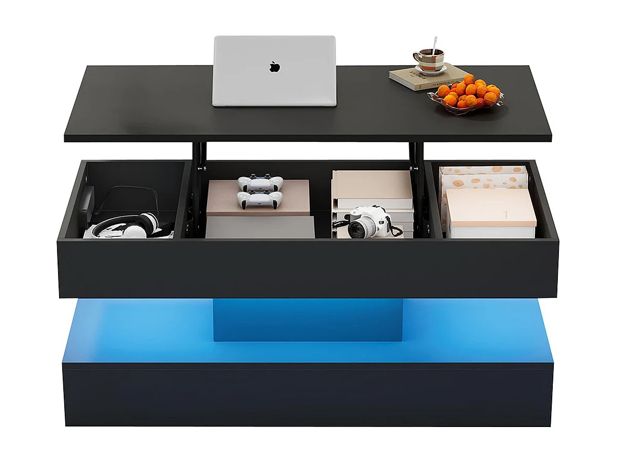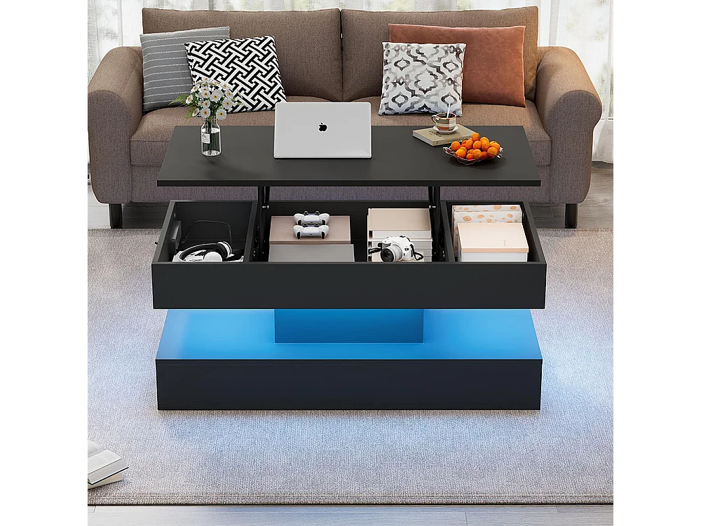 Table basse avec éclairage LED et espace de rangement moderne caché table d'appoint avec élévation hydraulique
