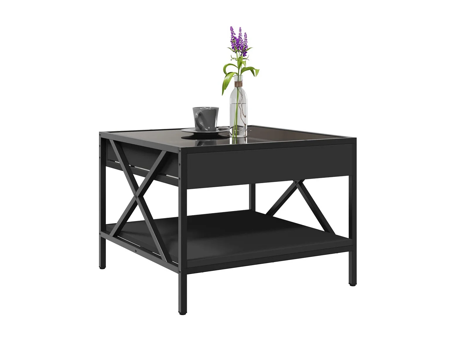 Table basse avec dessus en verre noir 50x50x40 cm acier