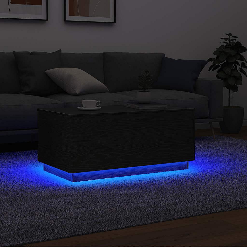 Table basse avec lumières LED chêne noir 90x49x40 cm