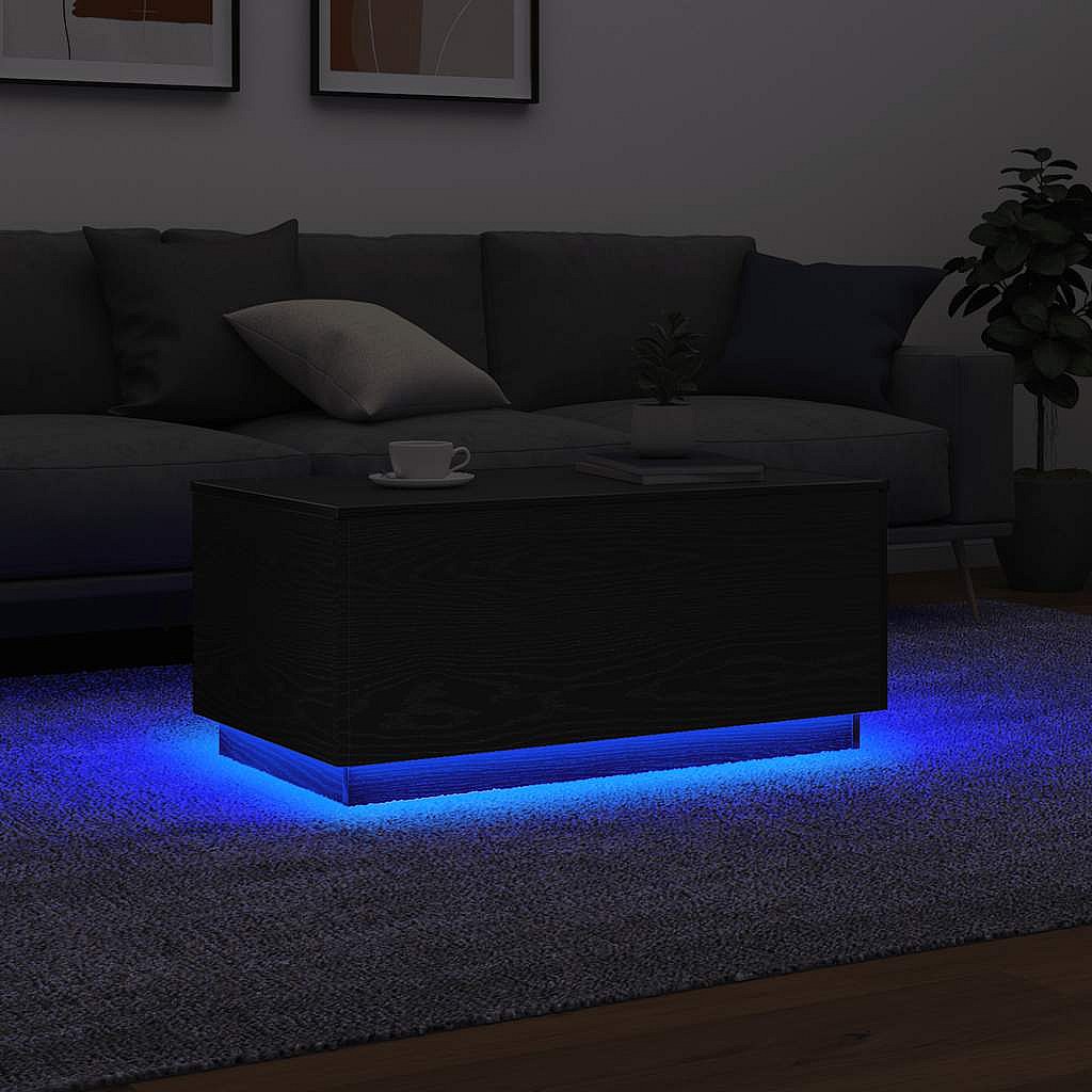 Table basse avec lumières LED chêne noir 90x50x40 cm