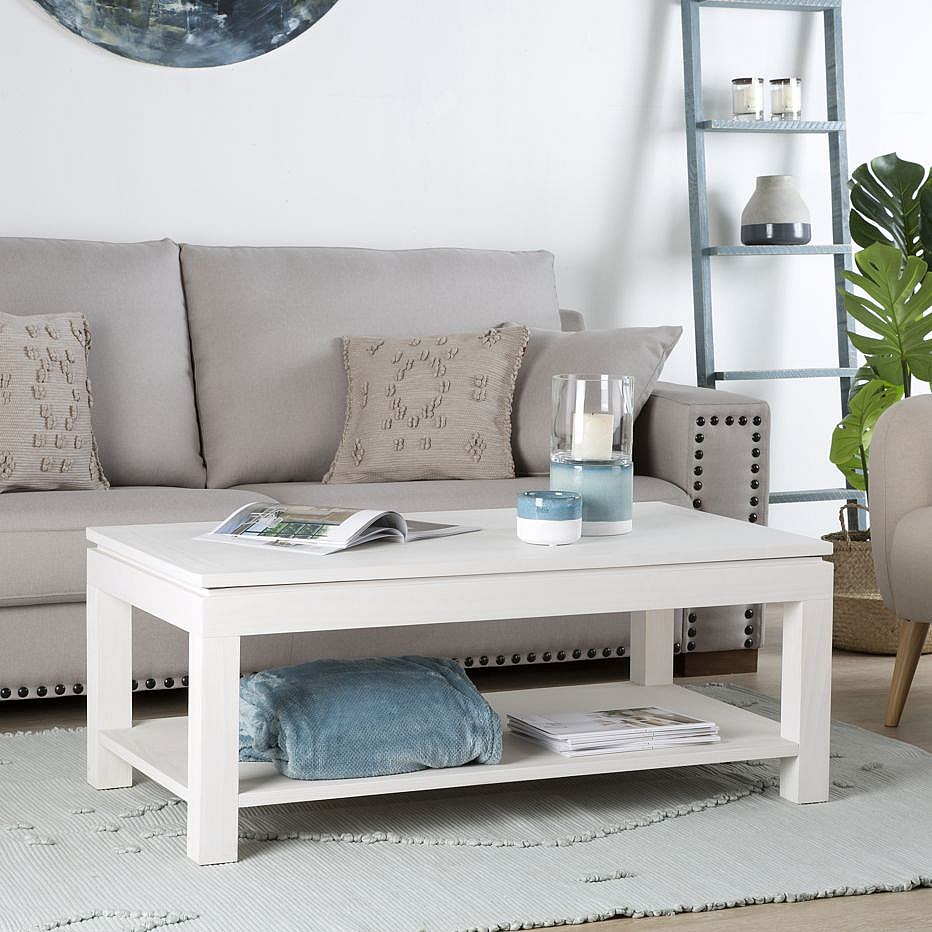 Table basse avec plateau relevable en bois massif blanc 110x44