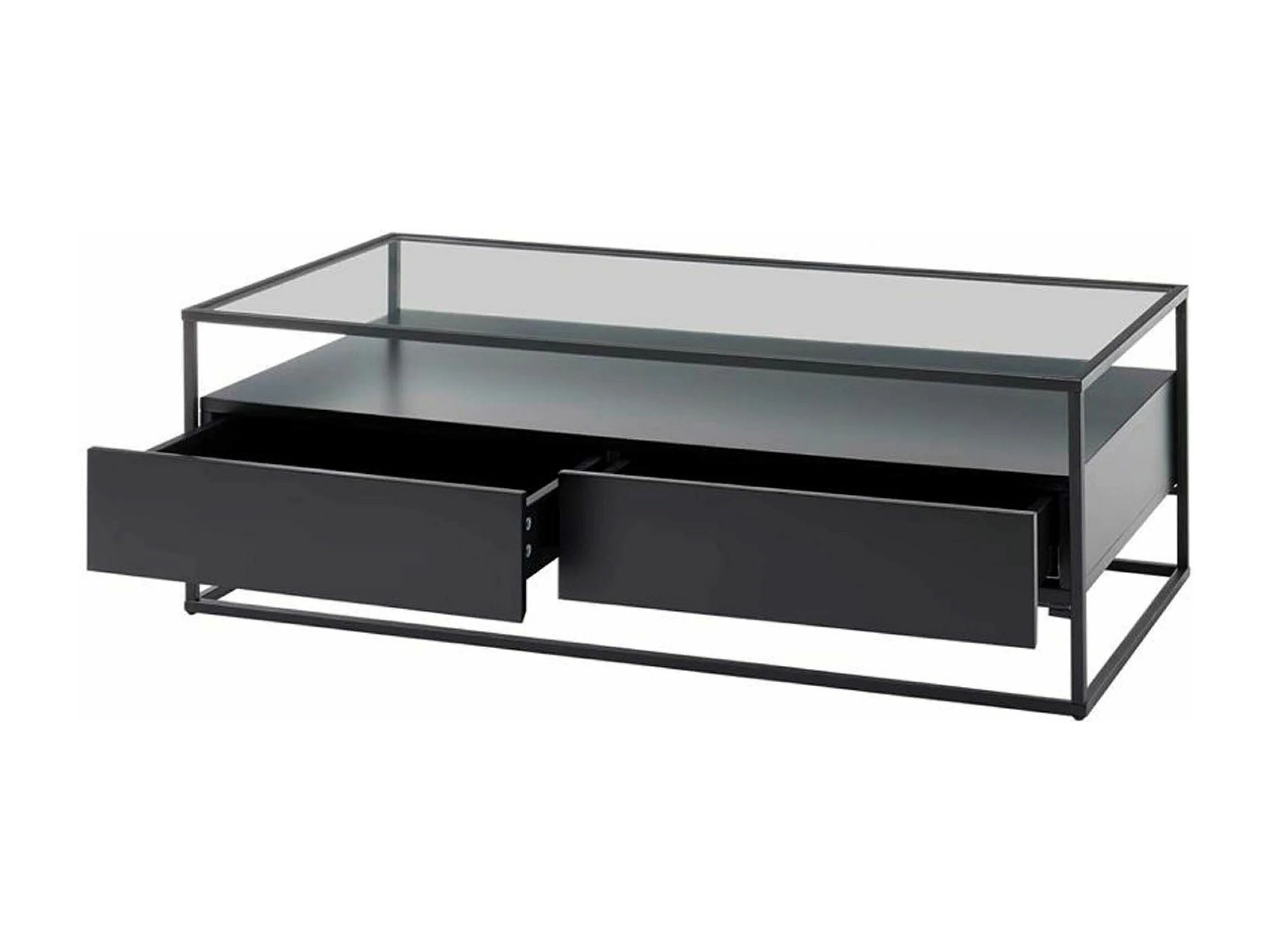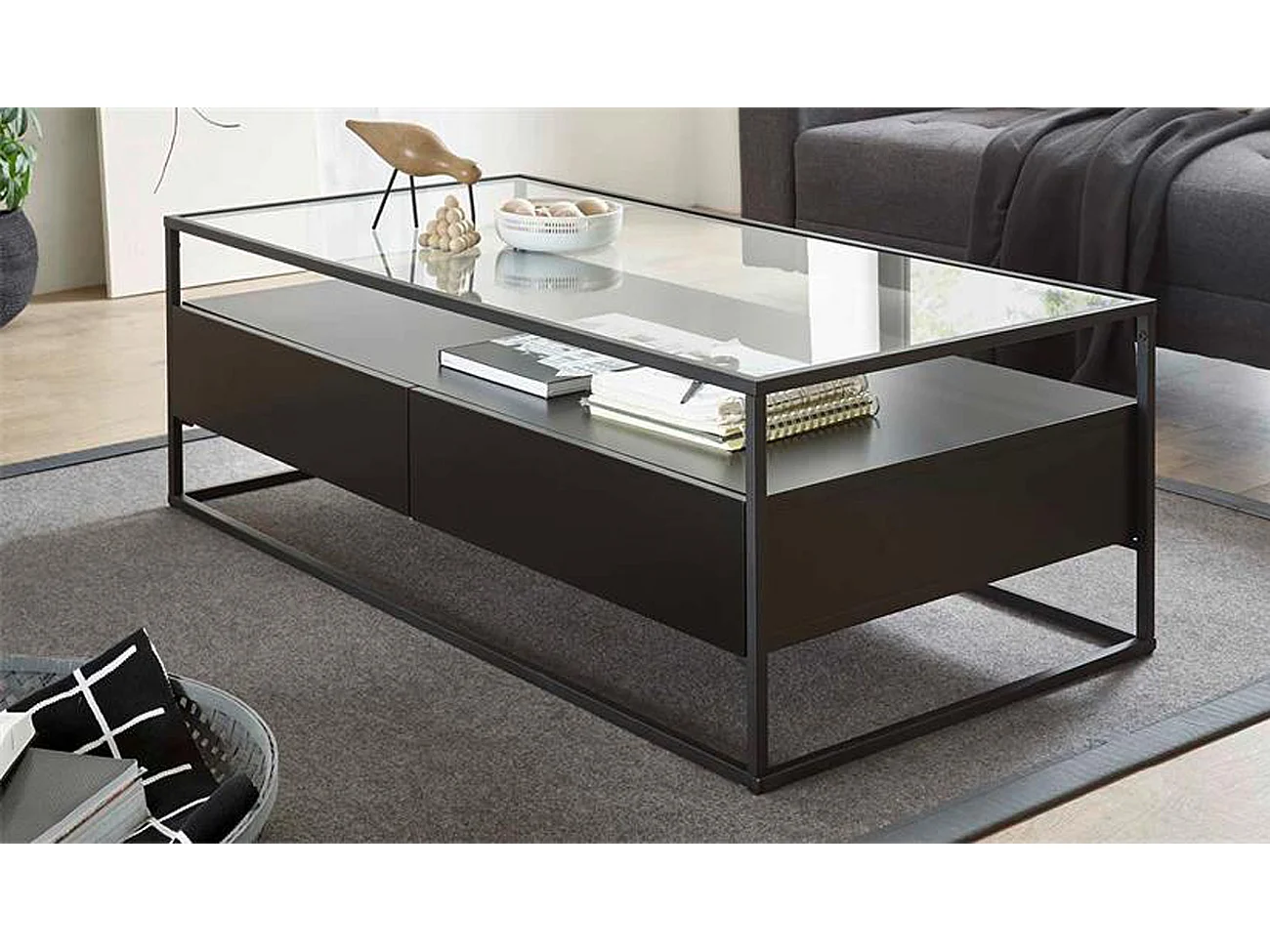 Table basse avec rangements en bois et métal coloris noir mat - L.120 x H.40 x P.60 cm