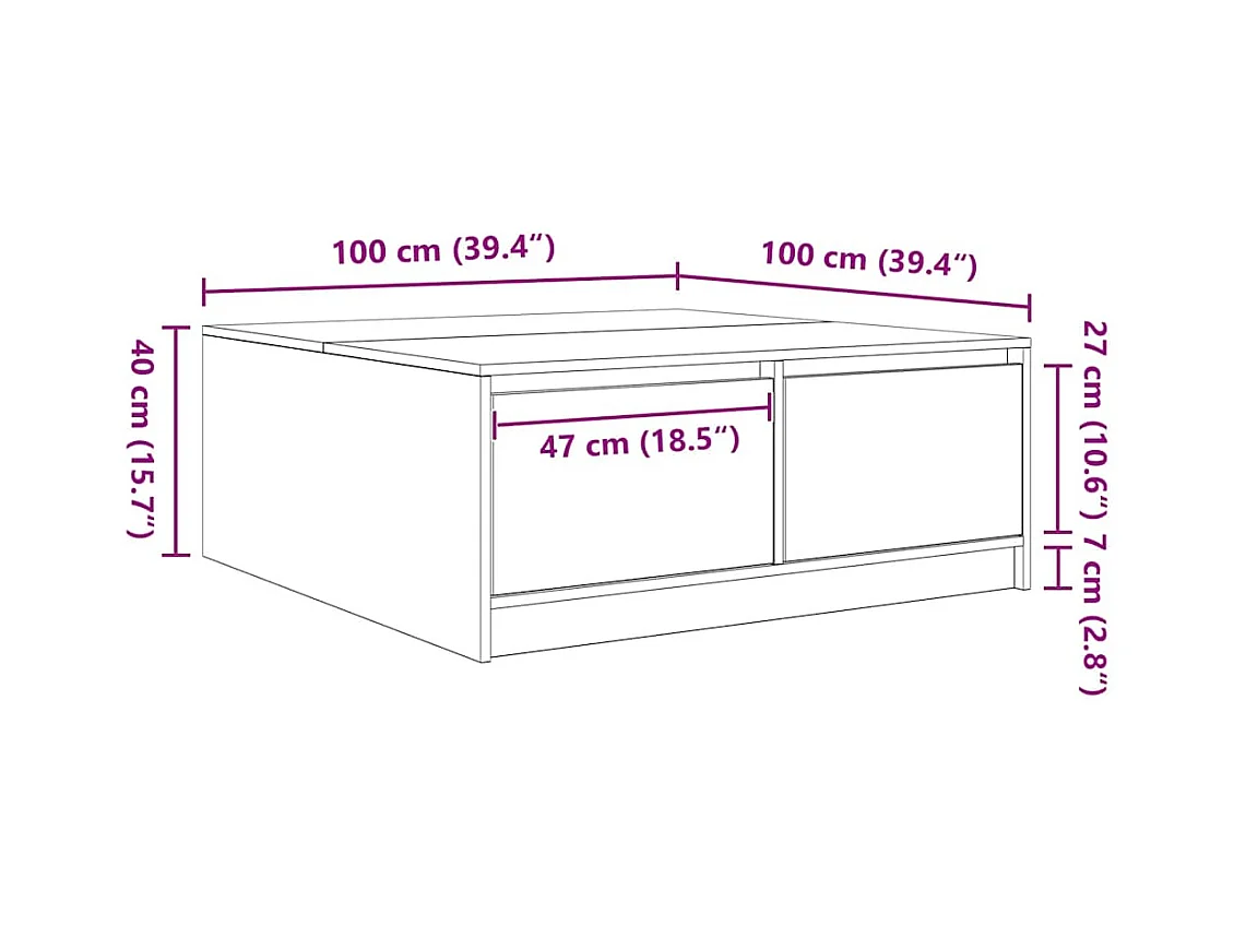 Table basse avec tiroirs chêne sonoma 100x100x40 cm