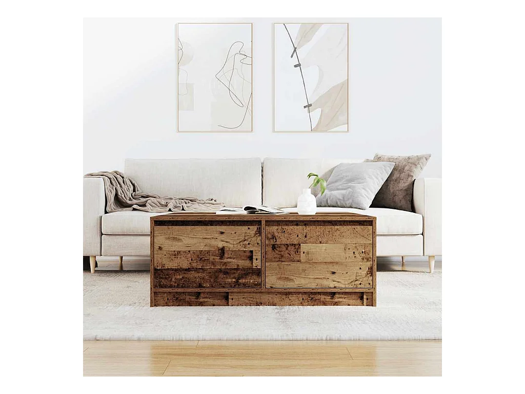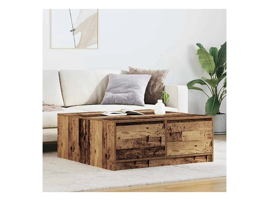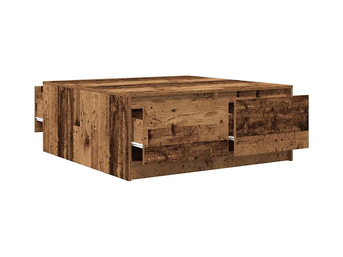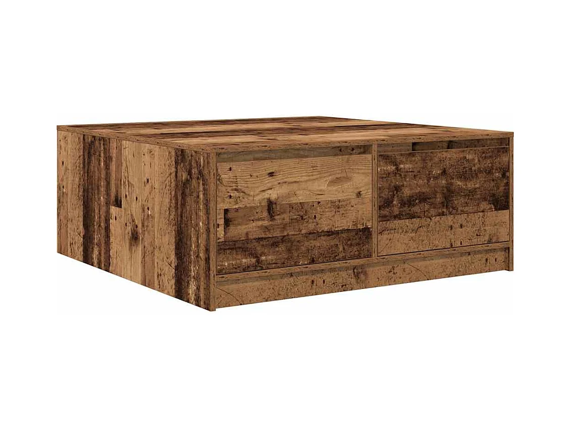 Table basse avec tiroirs vieux bois 100x100x40 cm