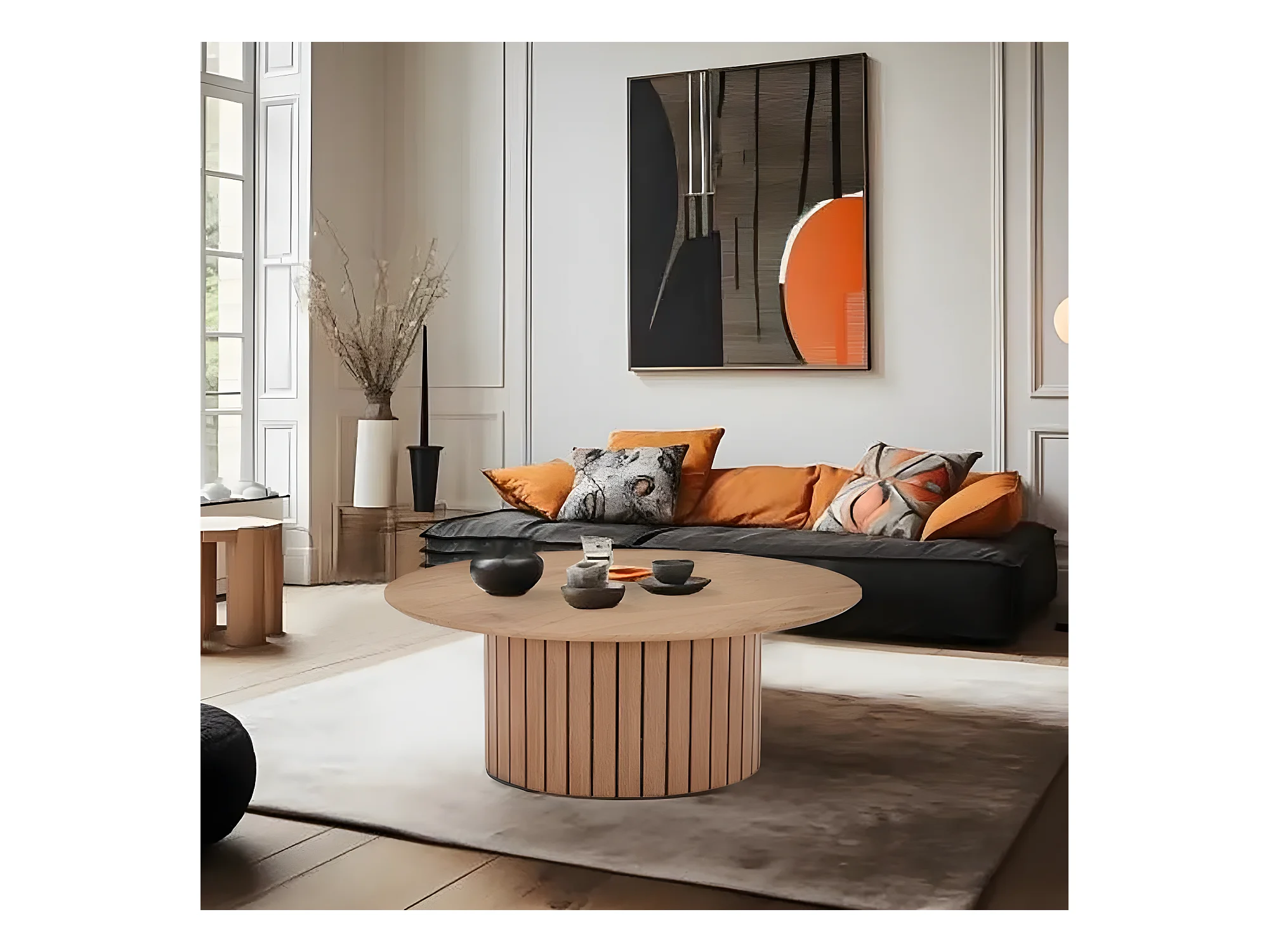Table basse BAHIA diamètre 80 cm / Décor Chêne artisan