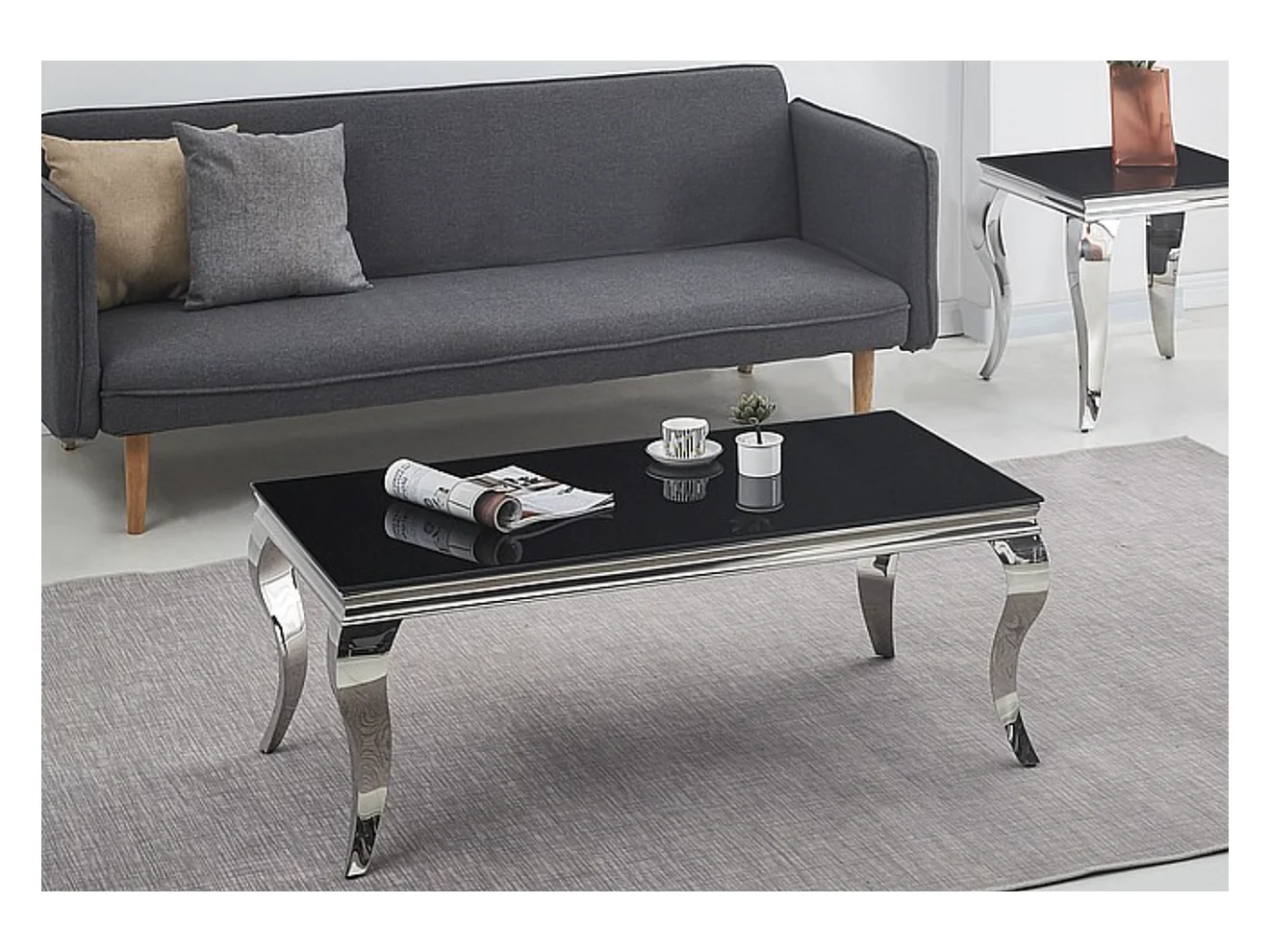 Table basse baroque métal & verre trempé noir 120cm Bolti