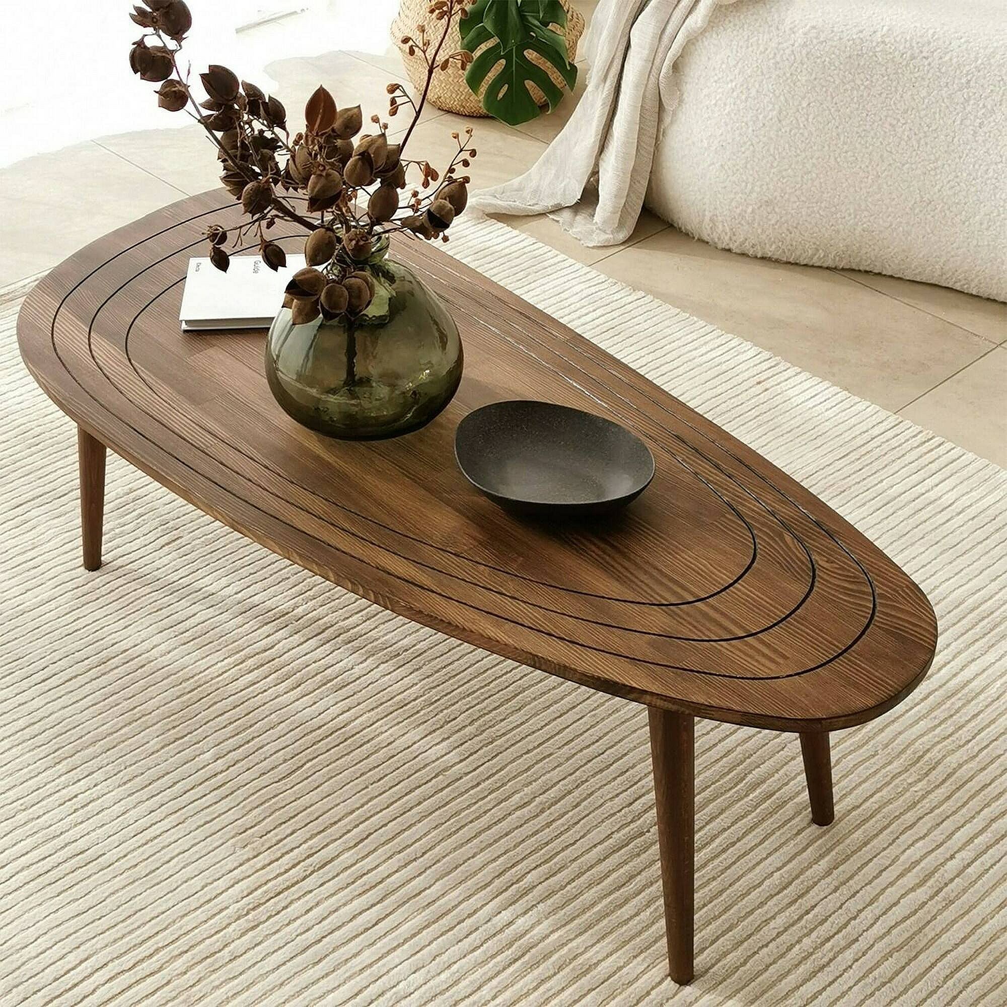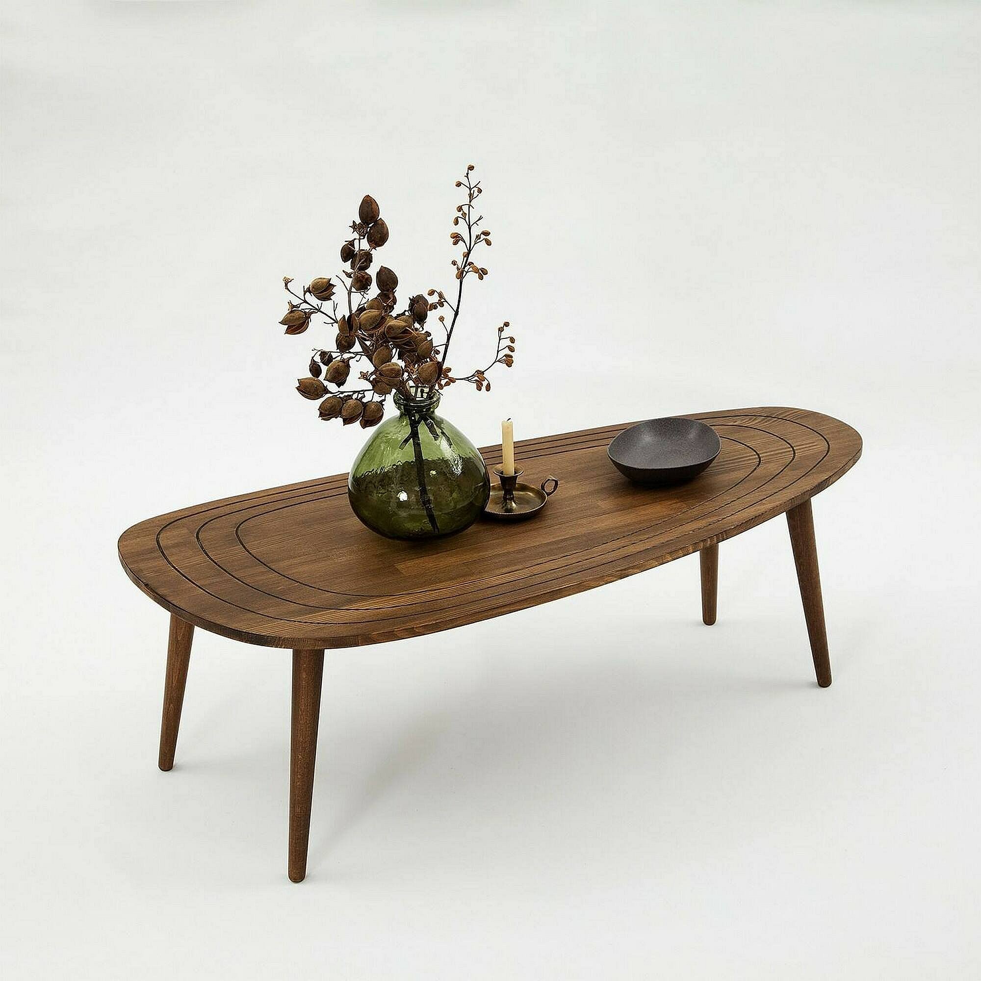 Table basse Beid, Table basse, Porte-revues pour canapé, Etagère de salon, 115x50h38 cm, Noyer
