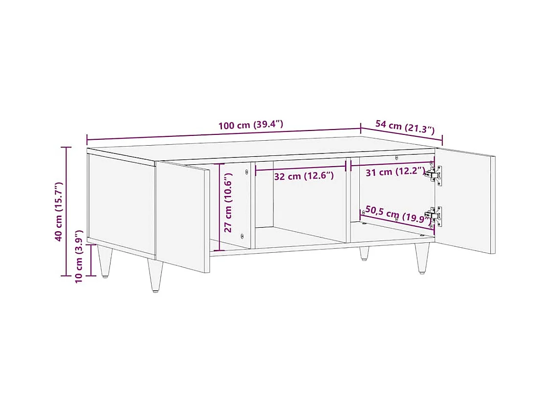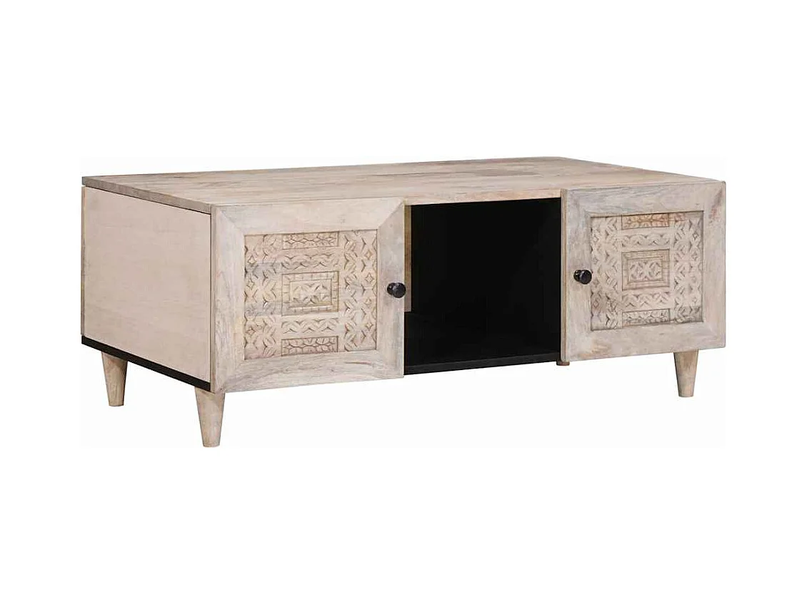 Table basse Beige 100 x 54 x 40 cm bois de manguier massif