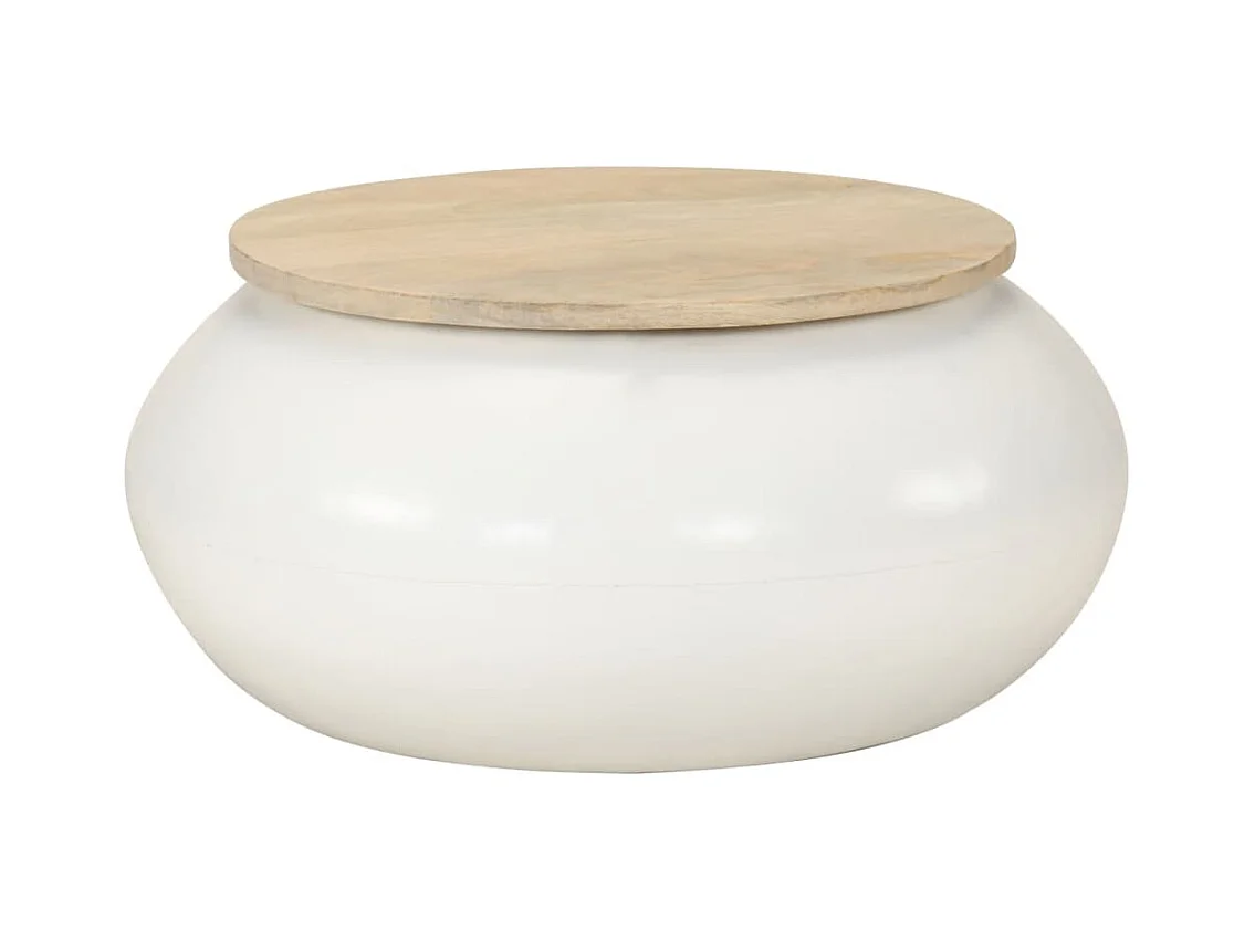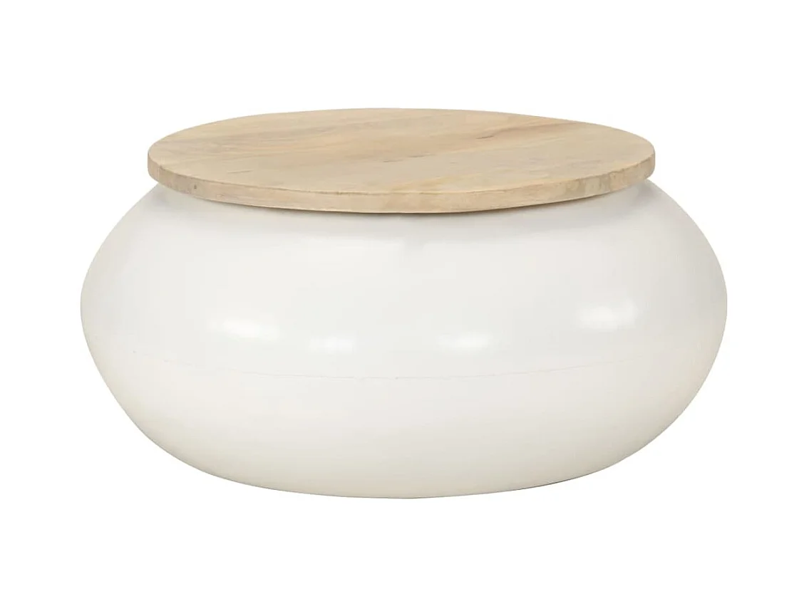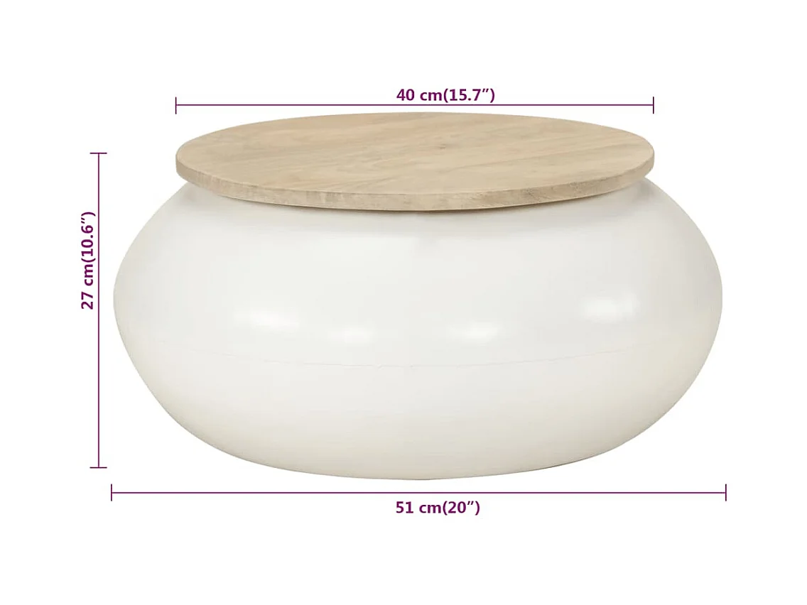 Table basse blanc 51x51x27 cm bois de manguier massif