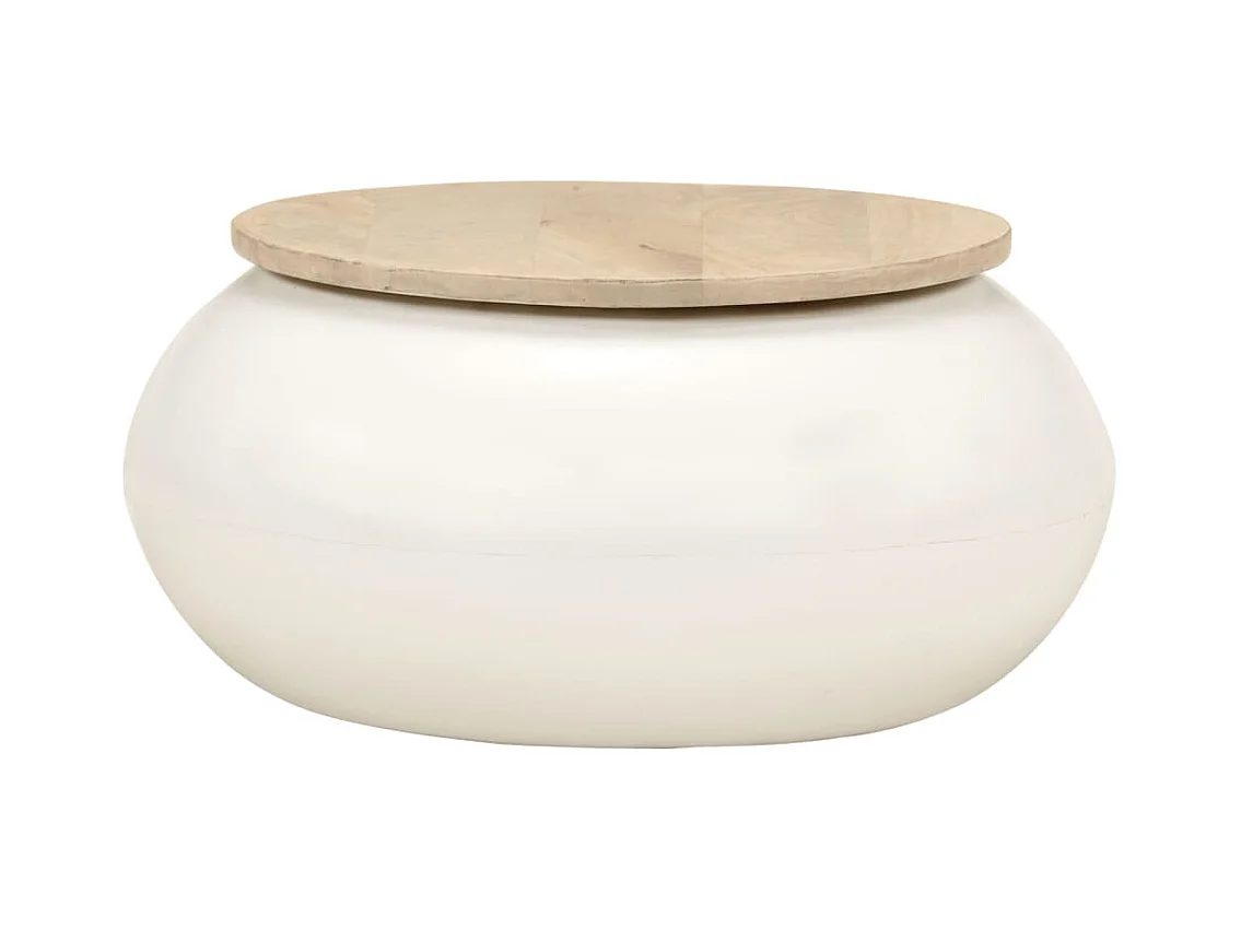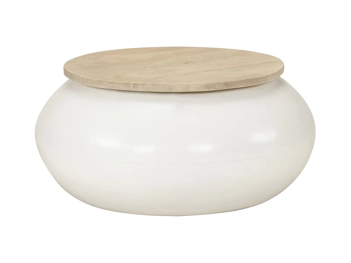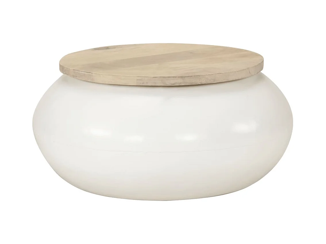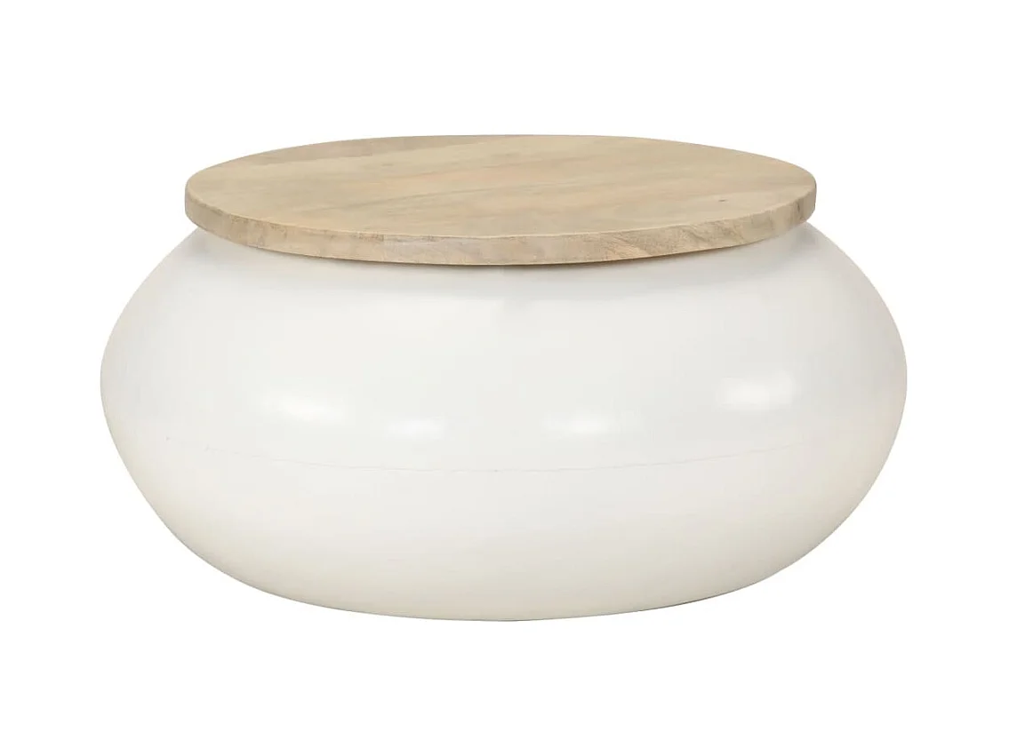 Table basse blanc 51x51x27 cm bois de manguier massif