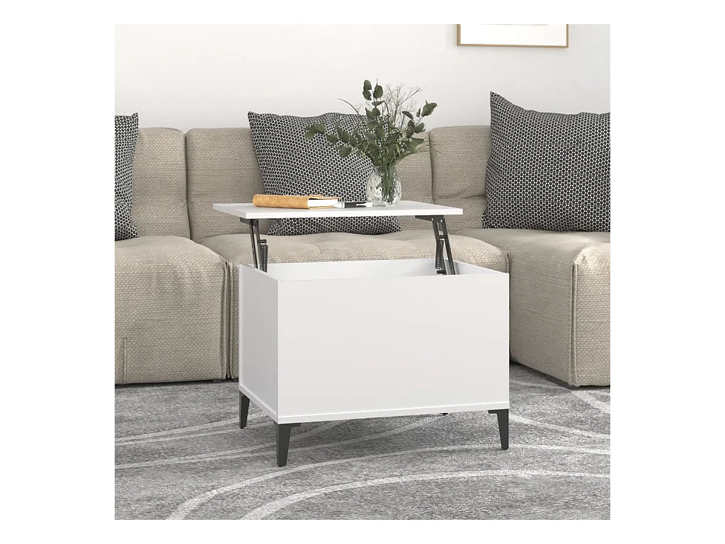 Table basse relevable Blanc 90x44,5x45 cm Bois d'ingénierie OFR75056 BonneVie Meuble