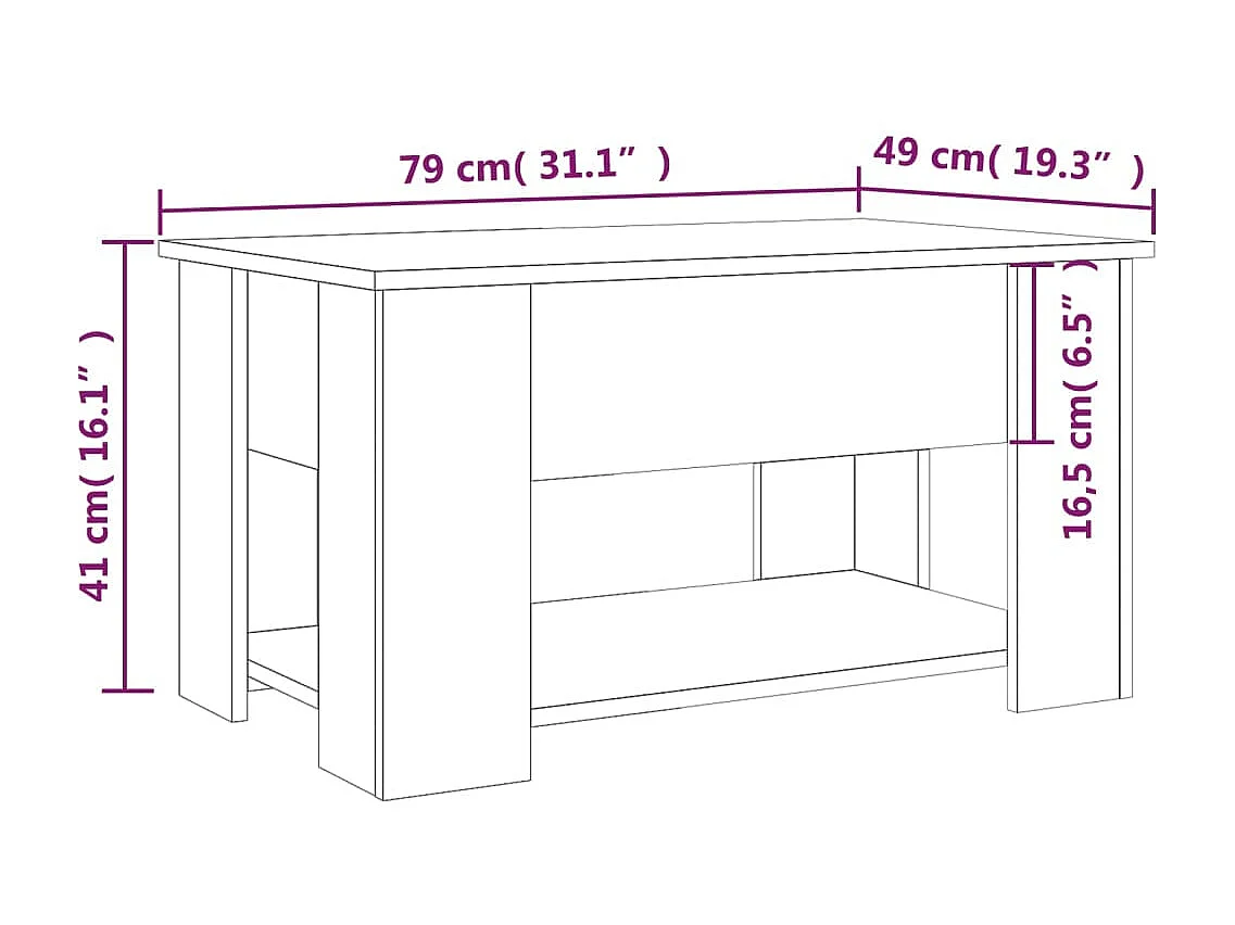 Table basse Blanc 79x49x41 Bois d'ingénierie 2