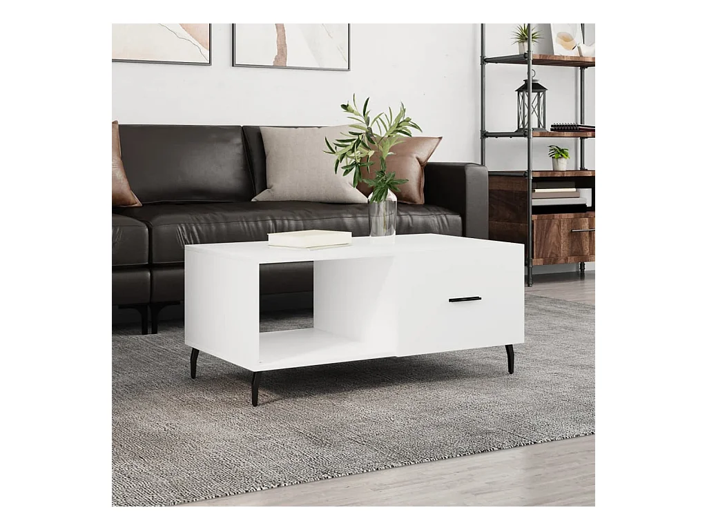 Table basse blanc 90x50x40 cm bois d'ingénierie