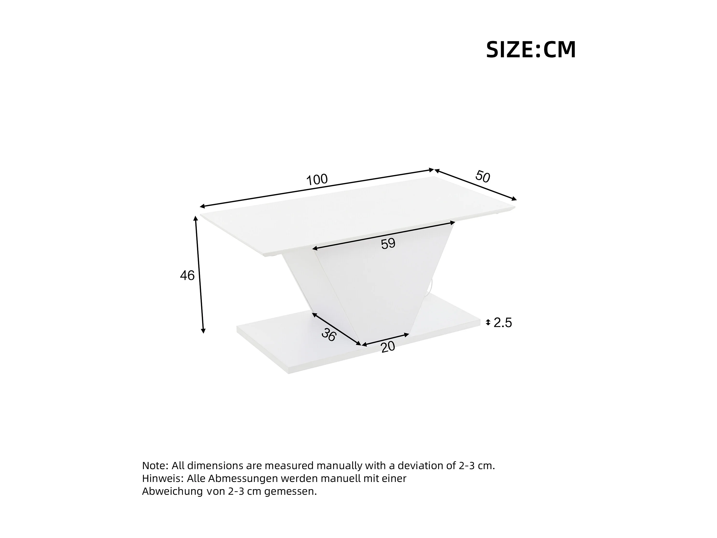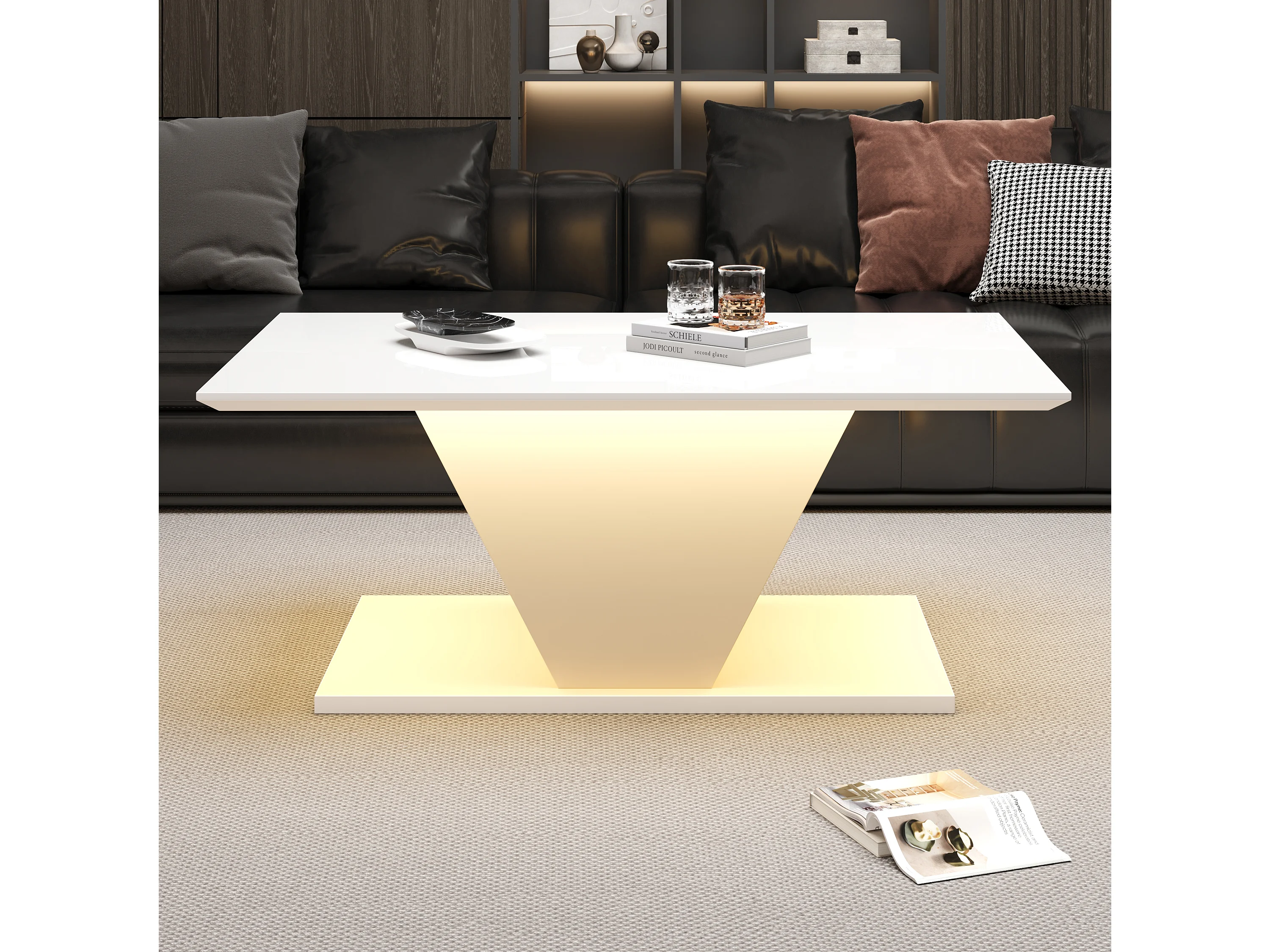 Table basse haute brillance - 100 x 50 x 46 cm - avec Leds - en forme de V - aggloméré - blanc