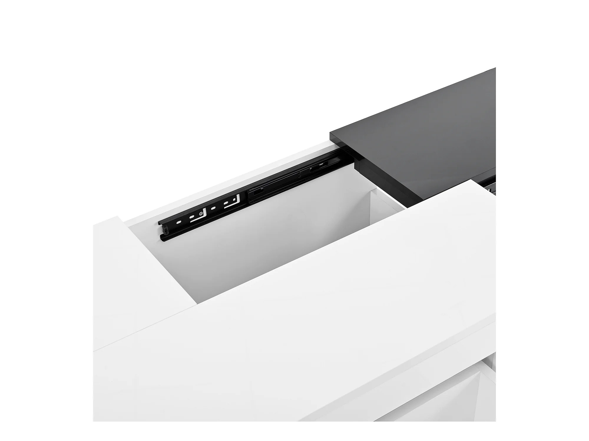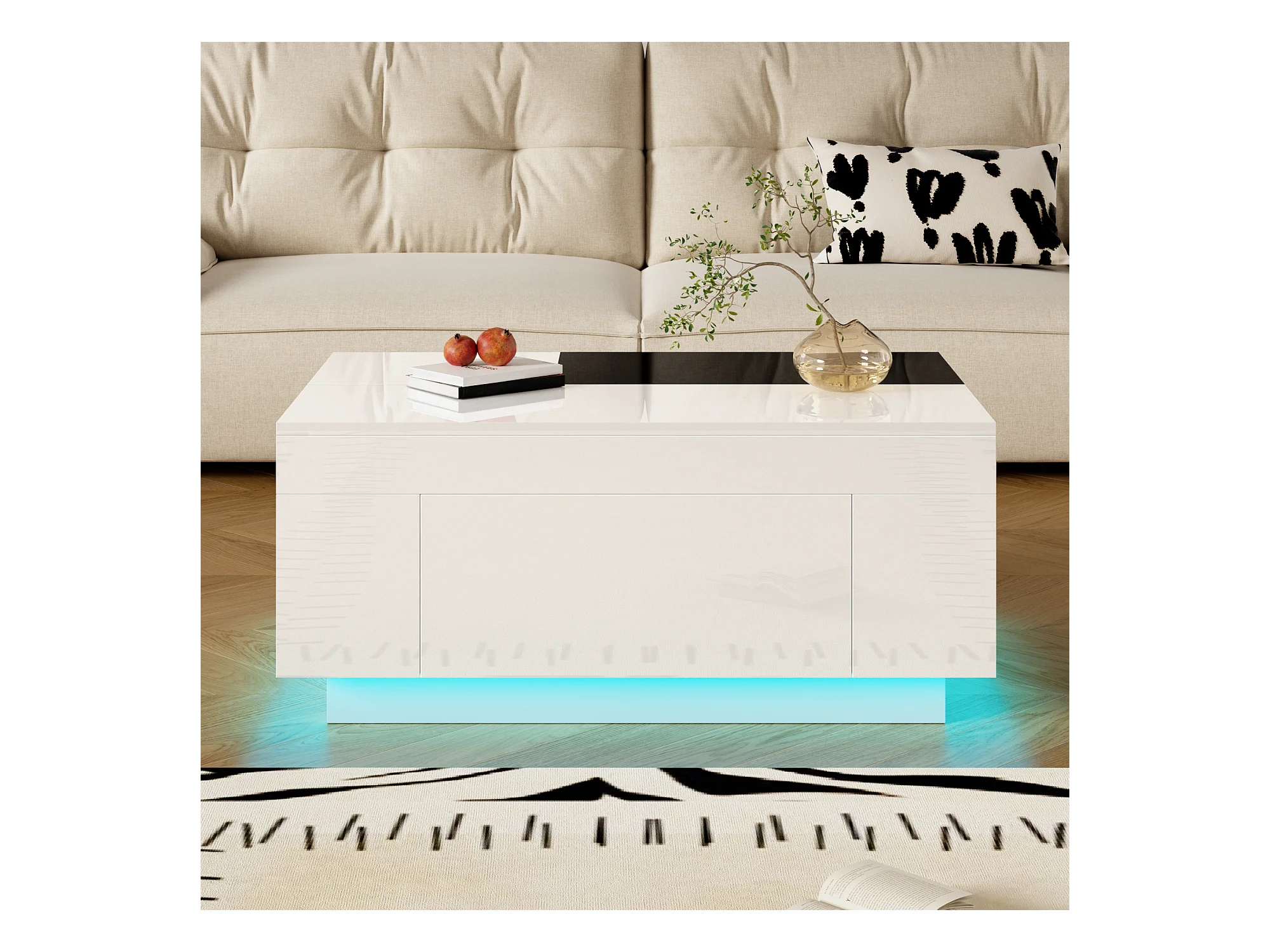 Table basse blanche avec plateau noir rétractable et 1 tiroir de rangement - Éclairage LED