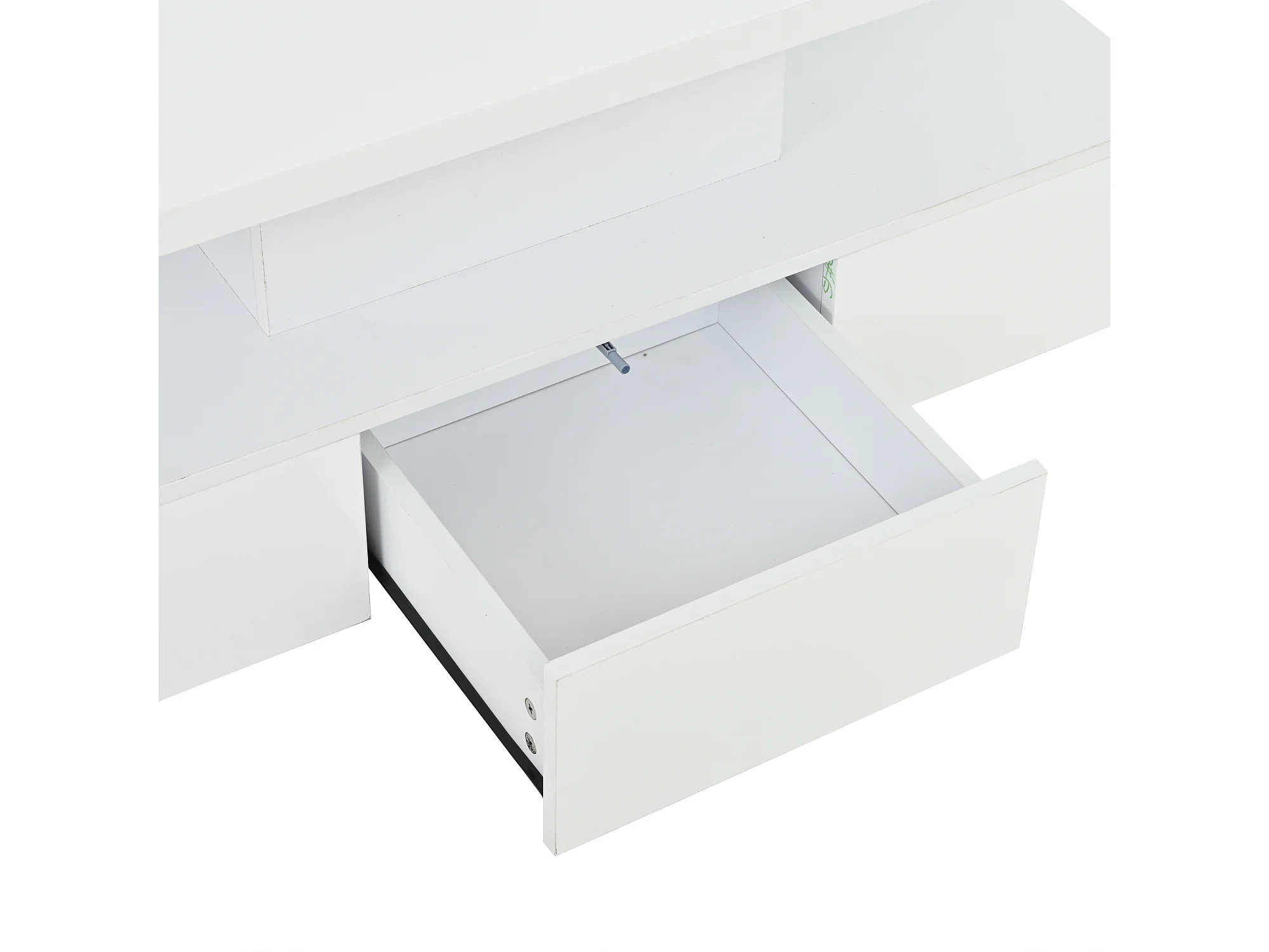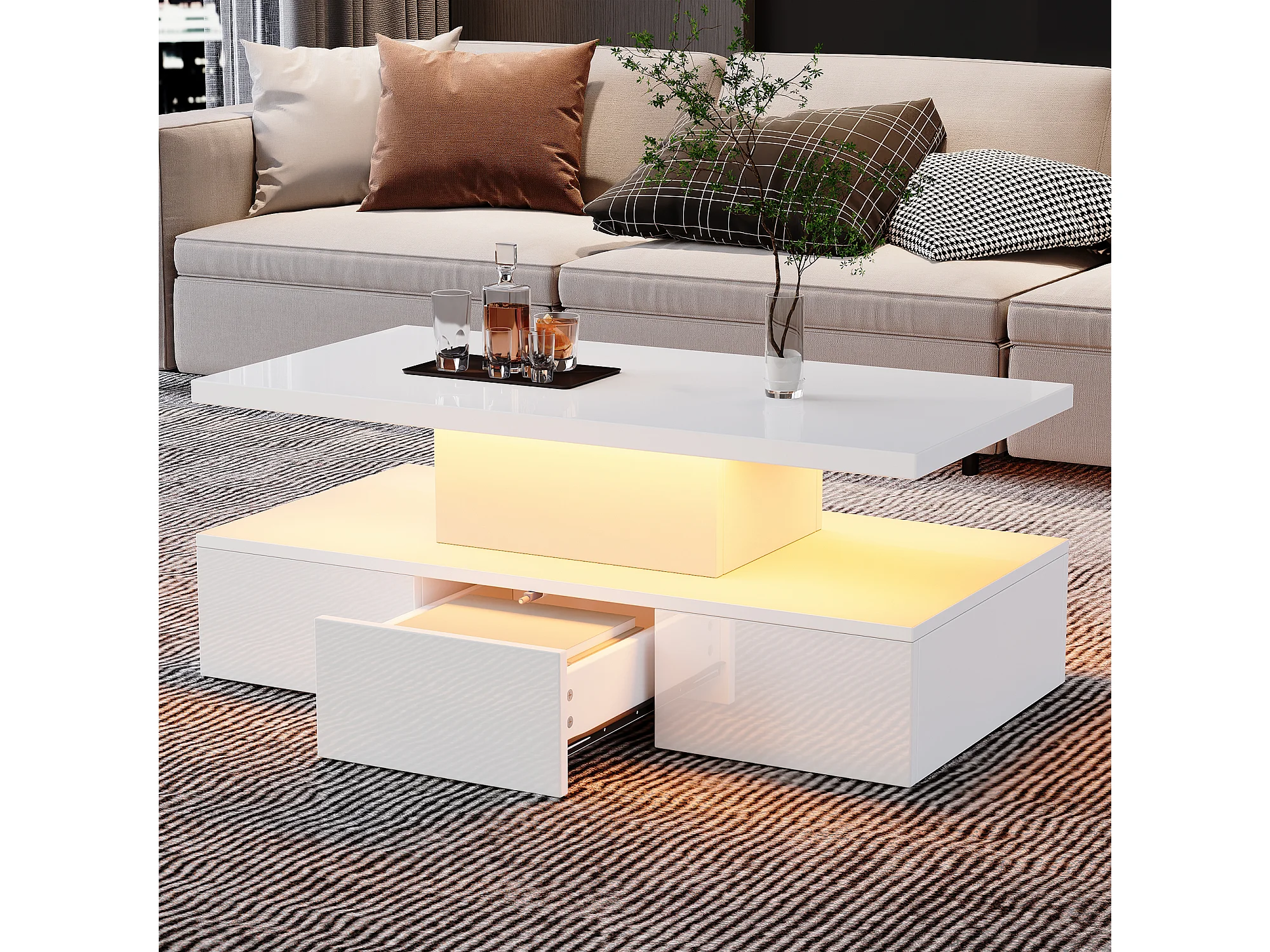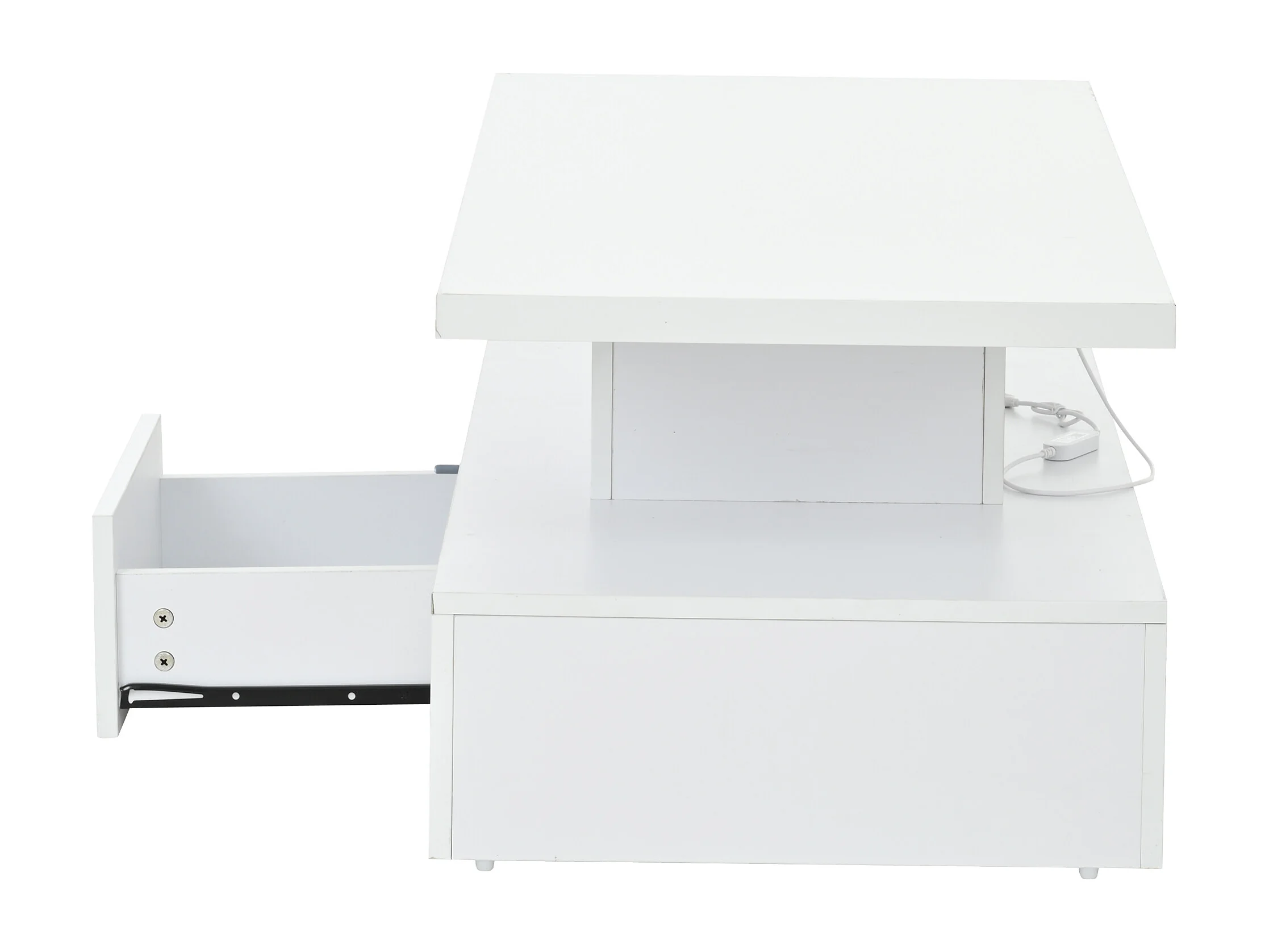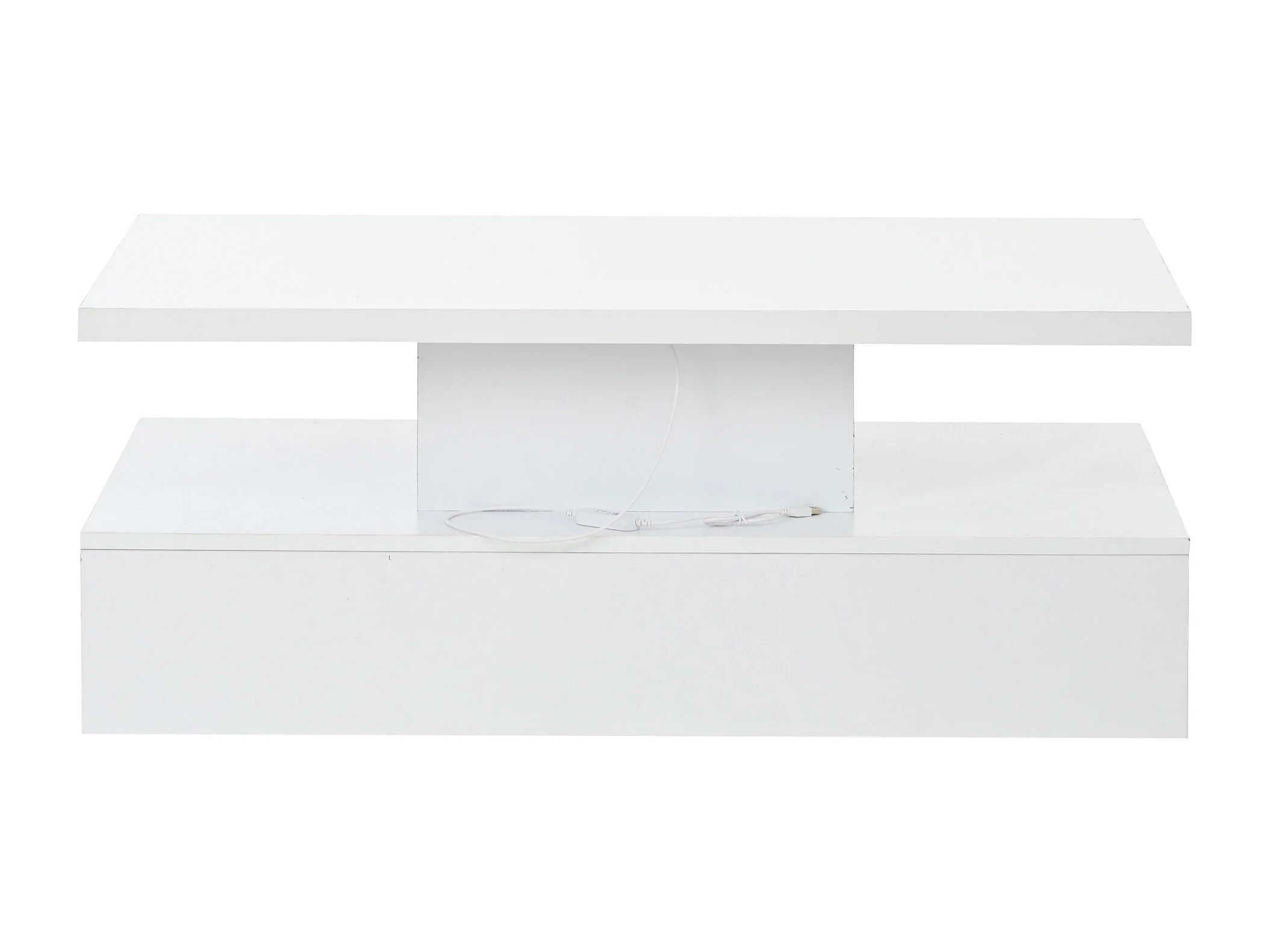 Table basse blanche avec tiroir et lumières LED 16 couleurs, design double couche
