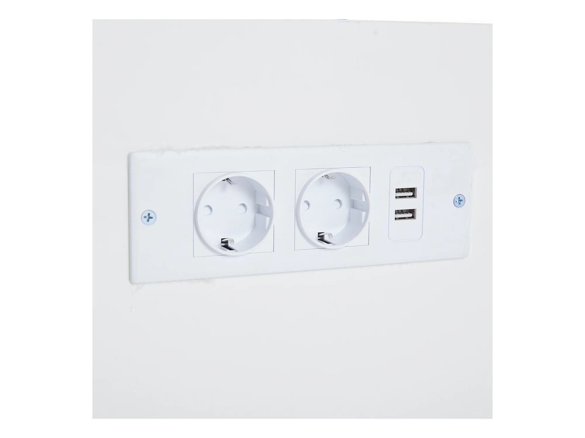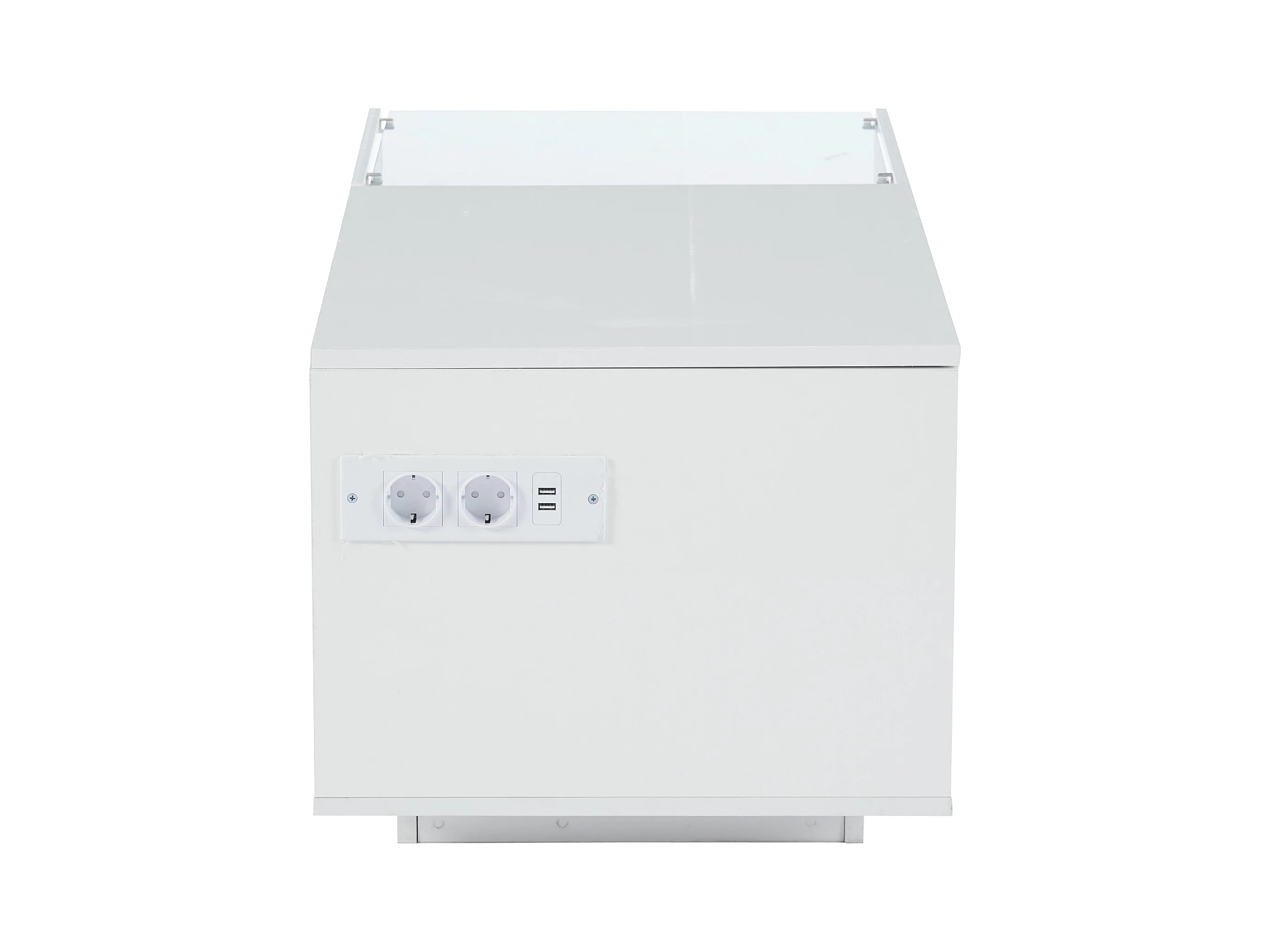 Table basse relevable Table basse blanc avec éclairage LED et prise USB, 1 tiroir - pour salon