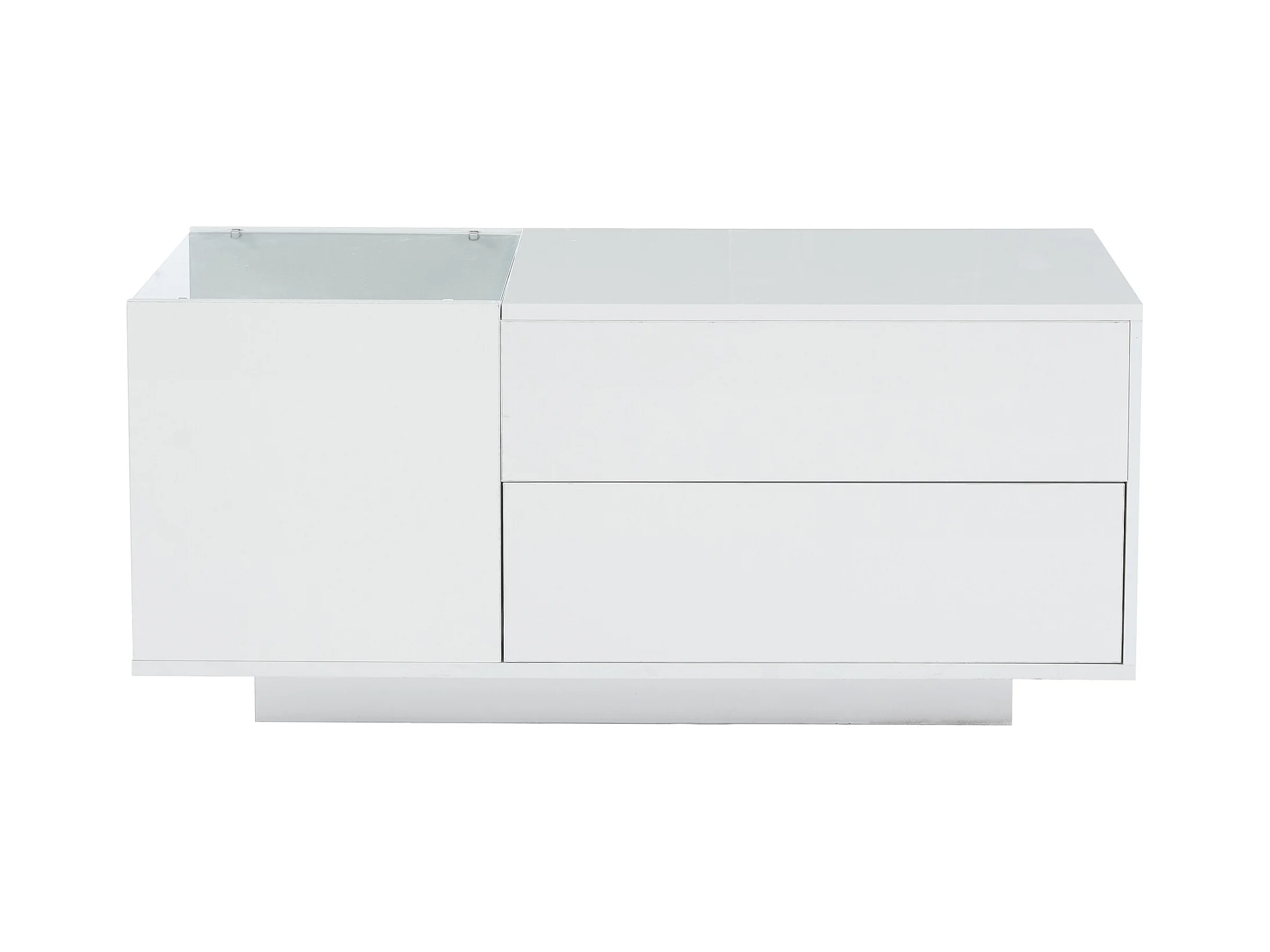 Table basse avec plateau relevable 95x48x40cm avec 2 tiroirs, LED, corps en blanc laqué