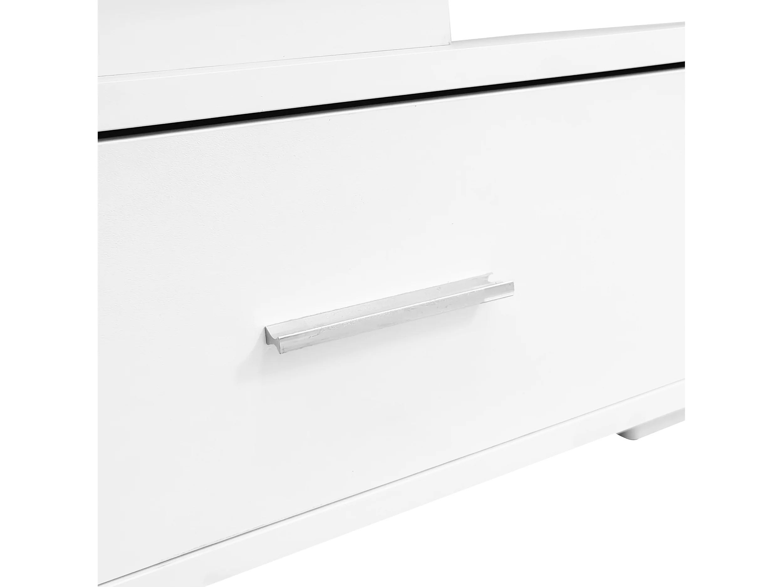 URBAN MEUBLE Table basse blanche plateau relevable à hauteur réglable 2 tiroirs et espace de rangement ouvert avec éclairage LED