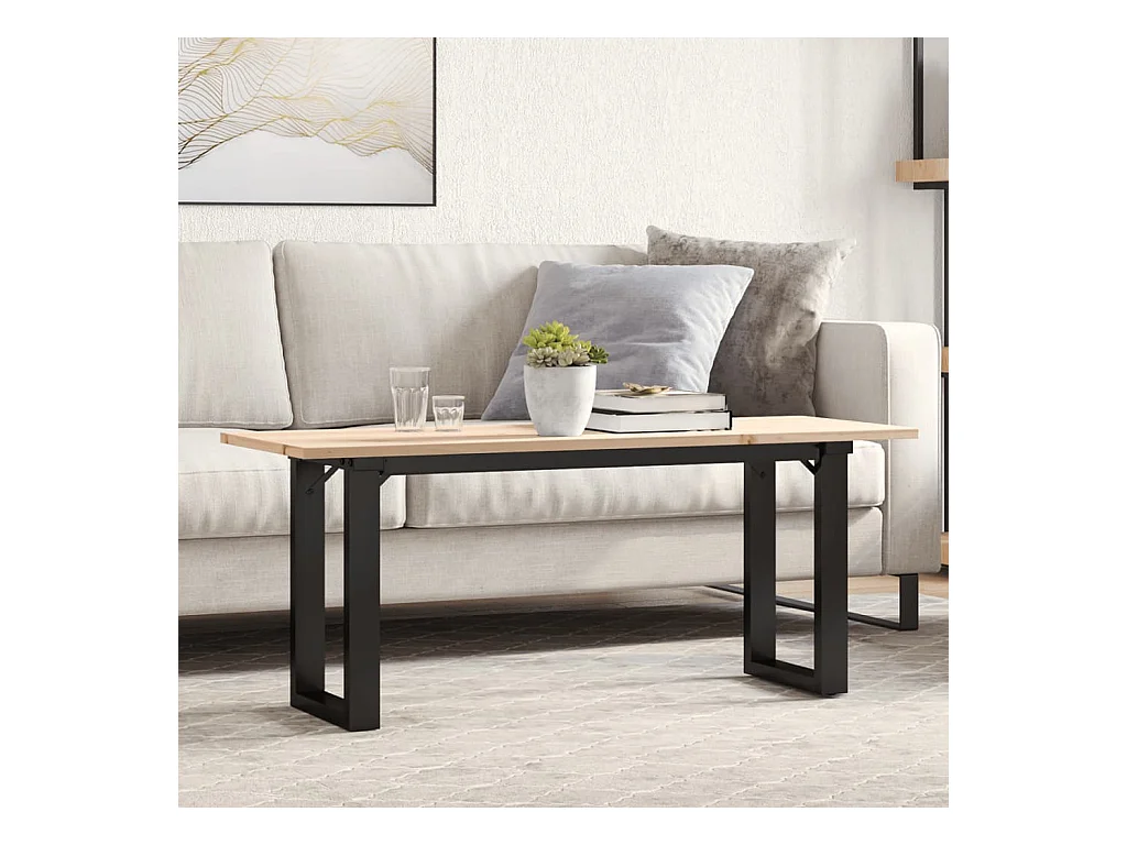 Table basse cadre en O 110x40x45 cm bois de pin massif et acier