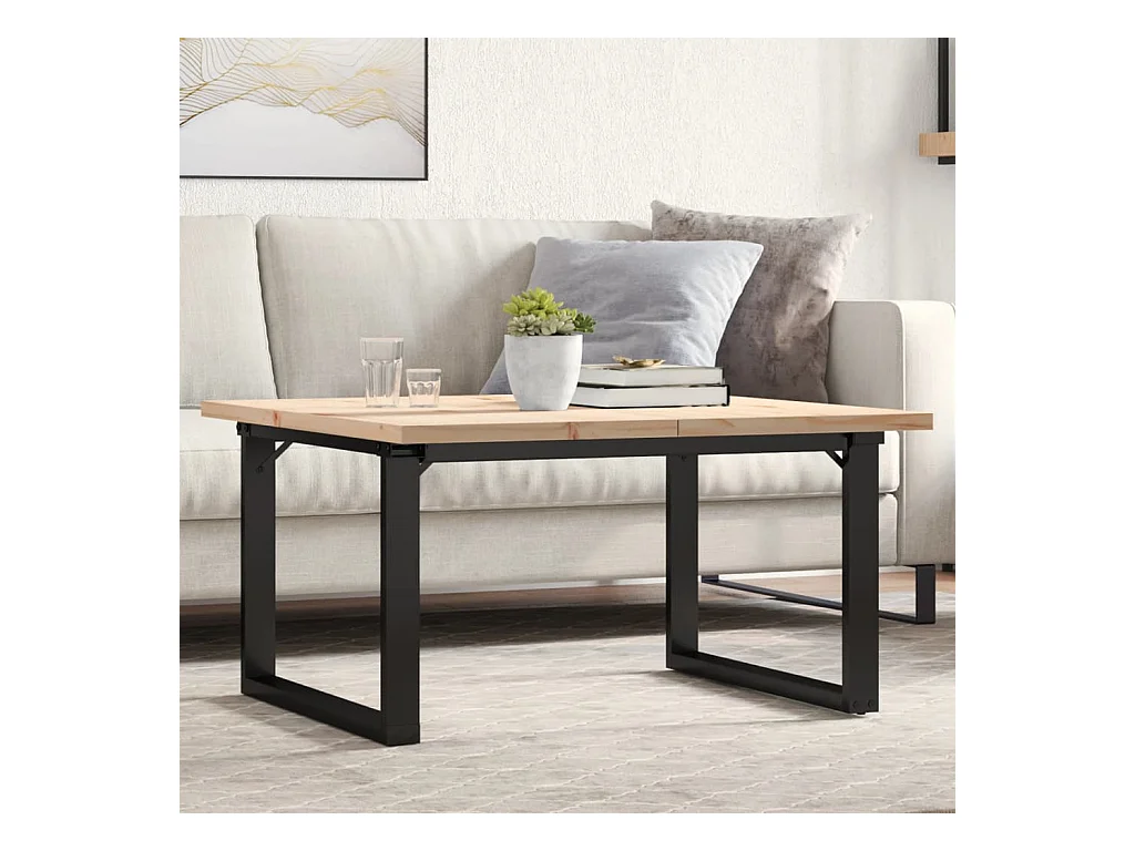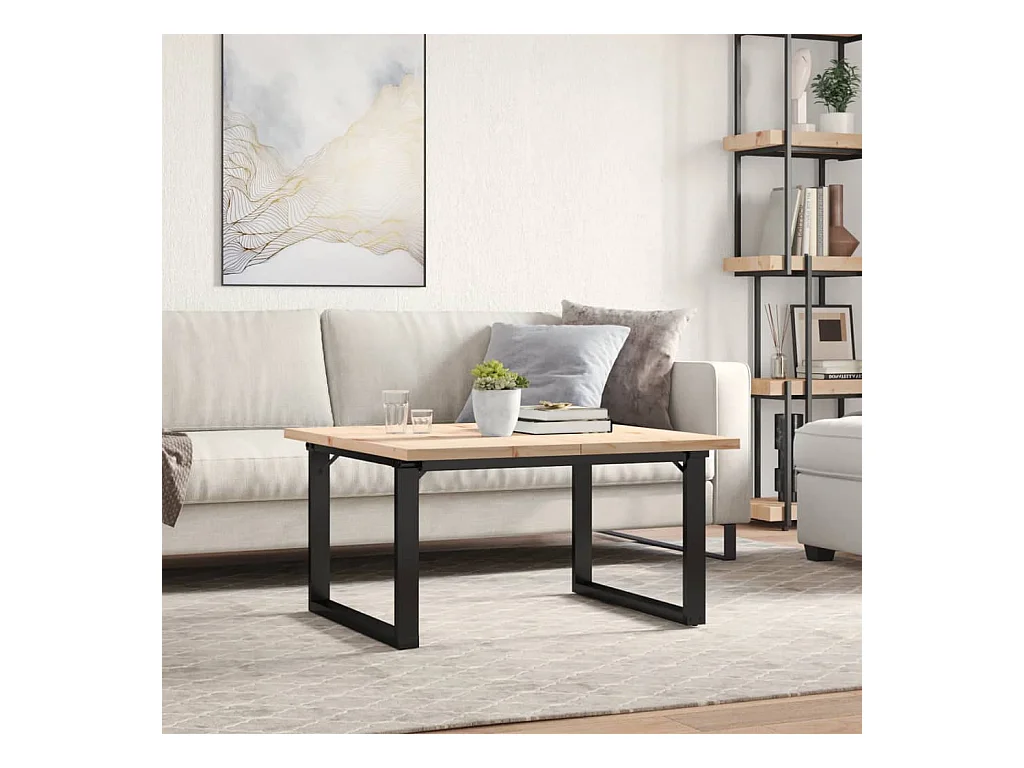 Table basse cadre en O 90x90x45,5cm bois de pin massif et acier