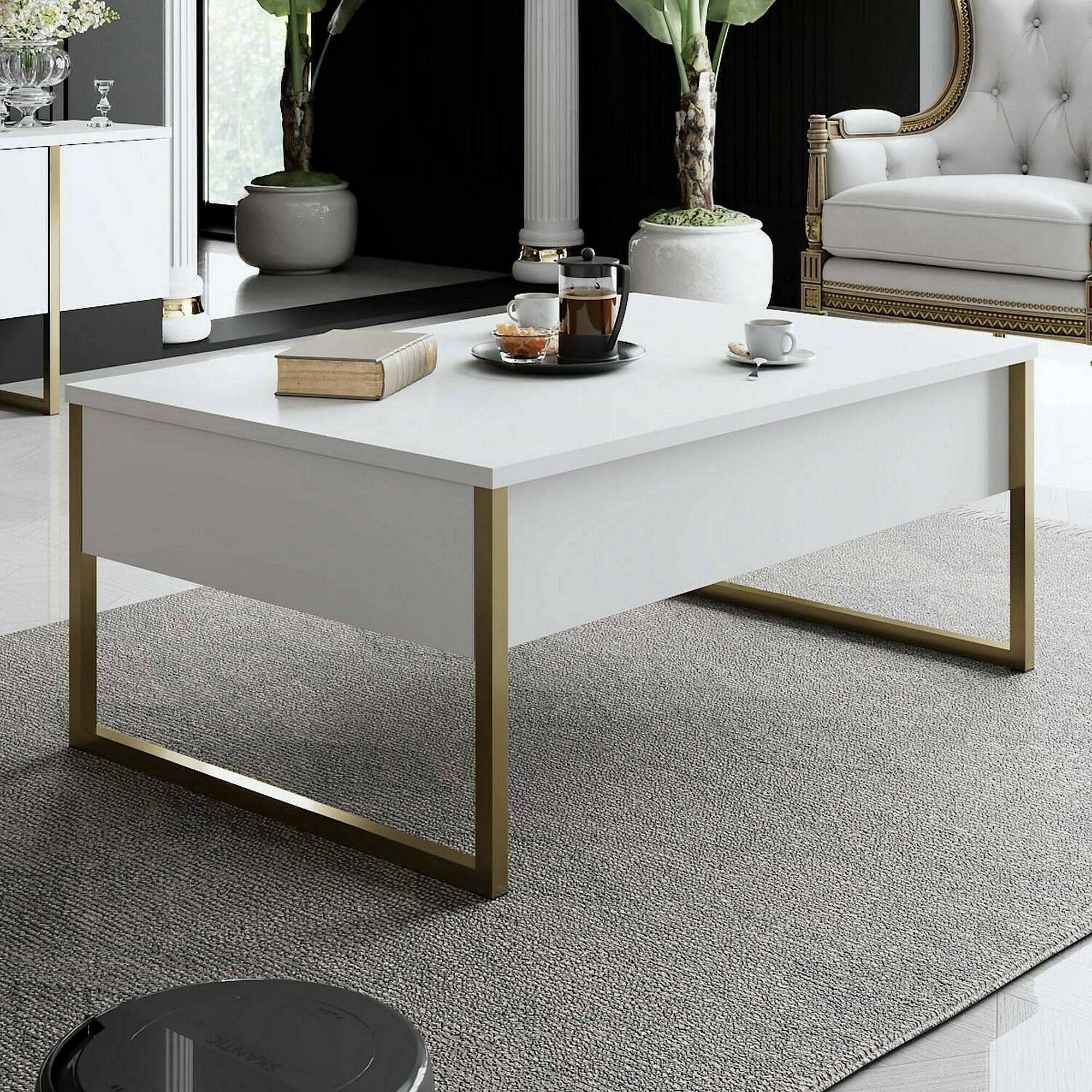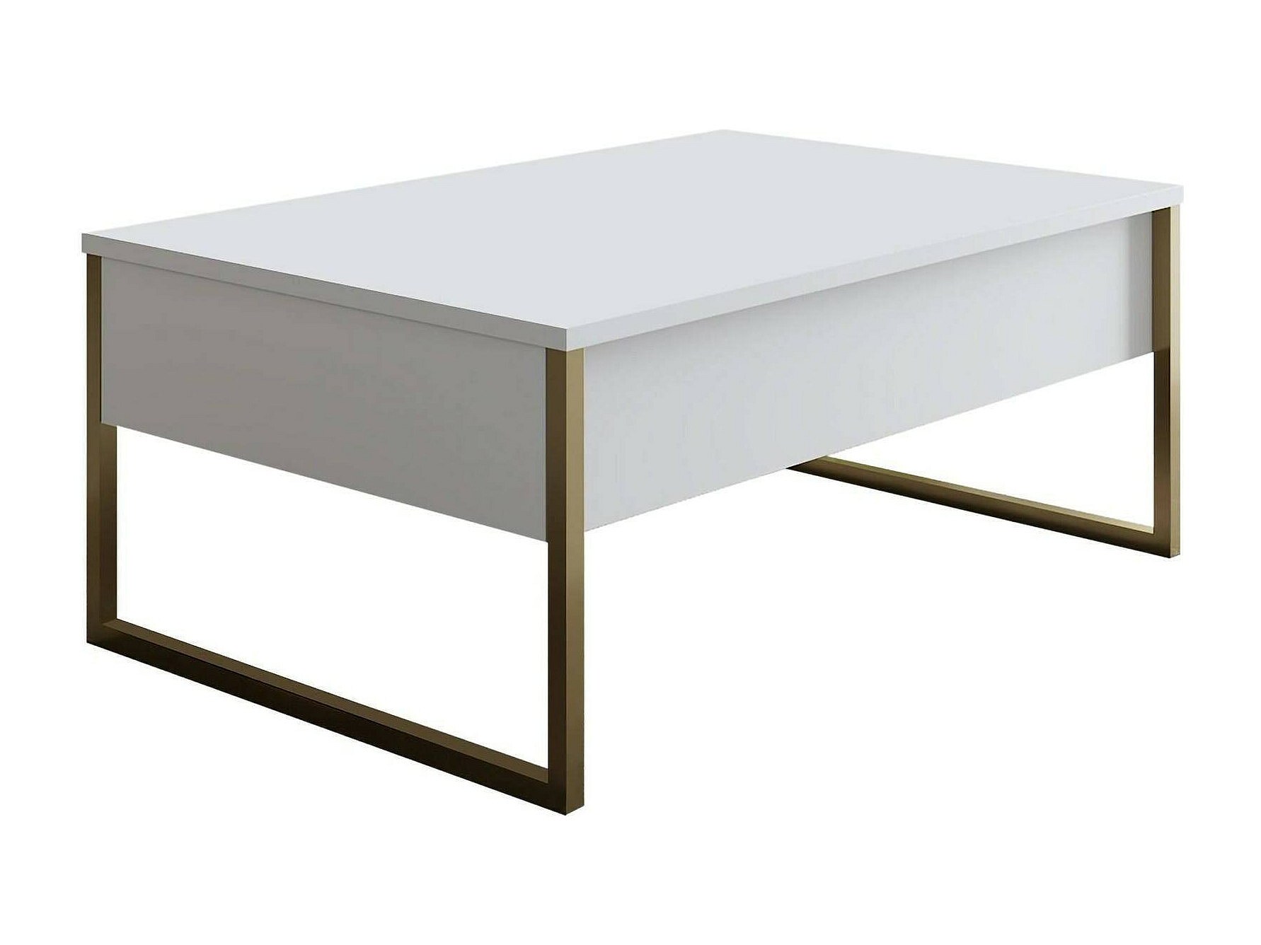 Table basse Canis, Table basse, Porte-revues pour canapé, Etagère de salon, 90x60h40 cm, Blanc et Or