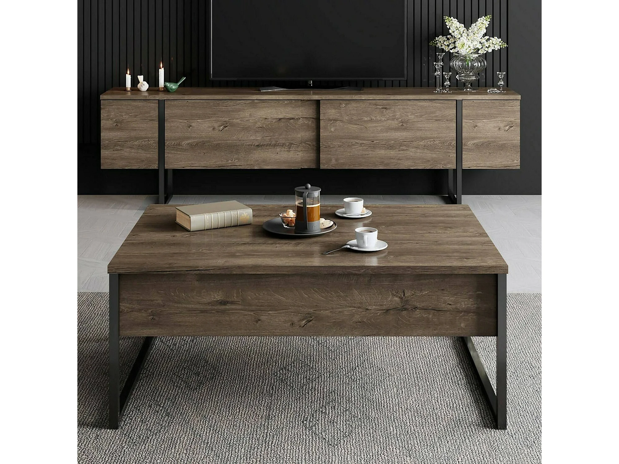 Table basse Canis, Table basse, Porte-revues pour canapé, Etagère de salon, 90x60h40 cm, Noyer et Noir