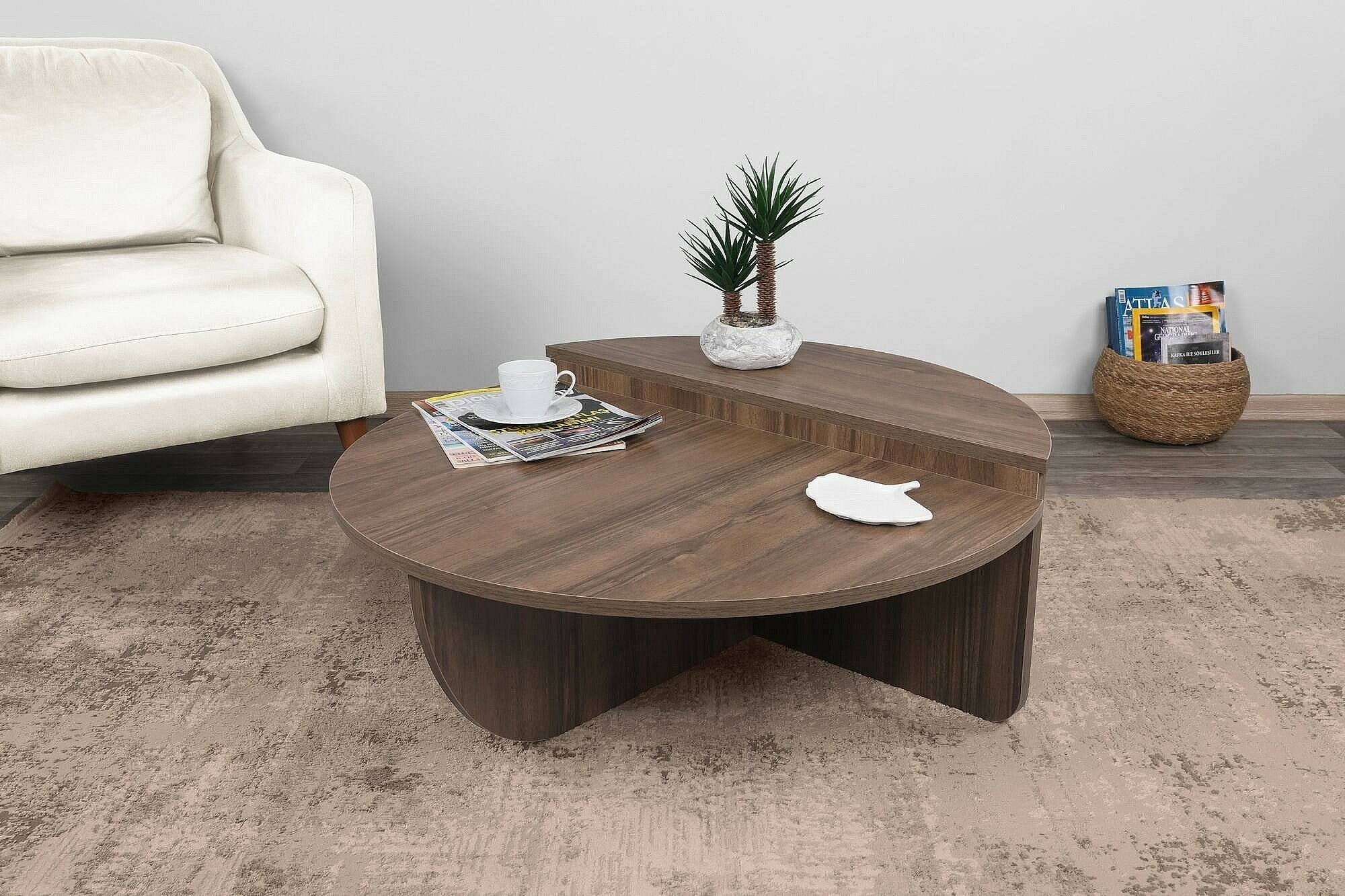 Table basse Canopus, Table basse, Porte-revues pour canapé, Etagère de salon, 90x90h35 cm, Noyer Foncé