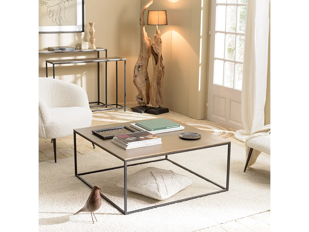 JOHAN - Table basse carrée 90x90cm aluminium doré et noir pieds métal