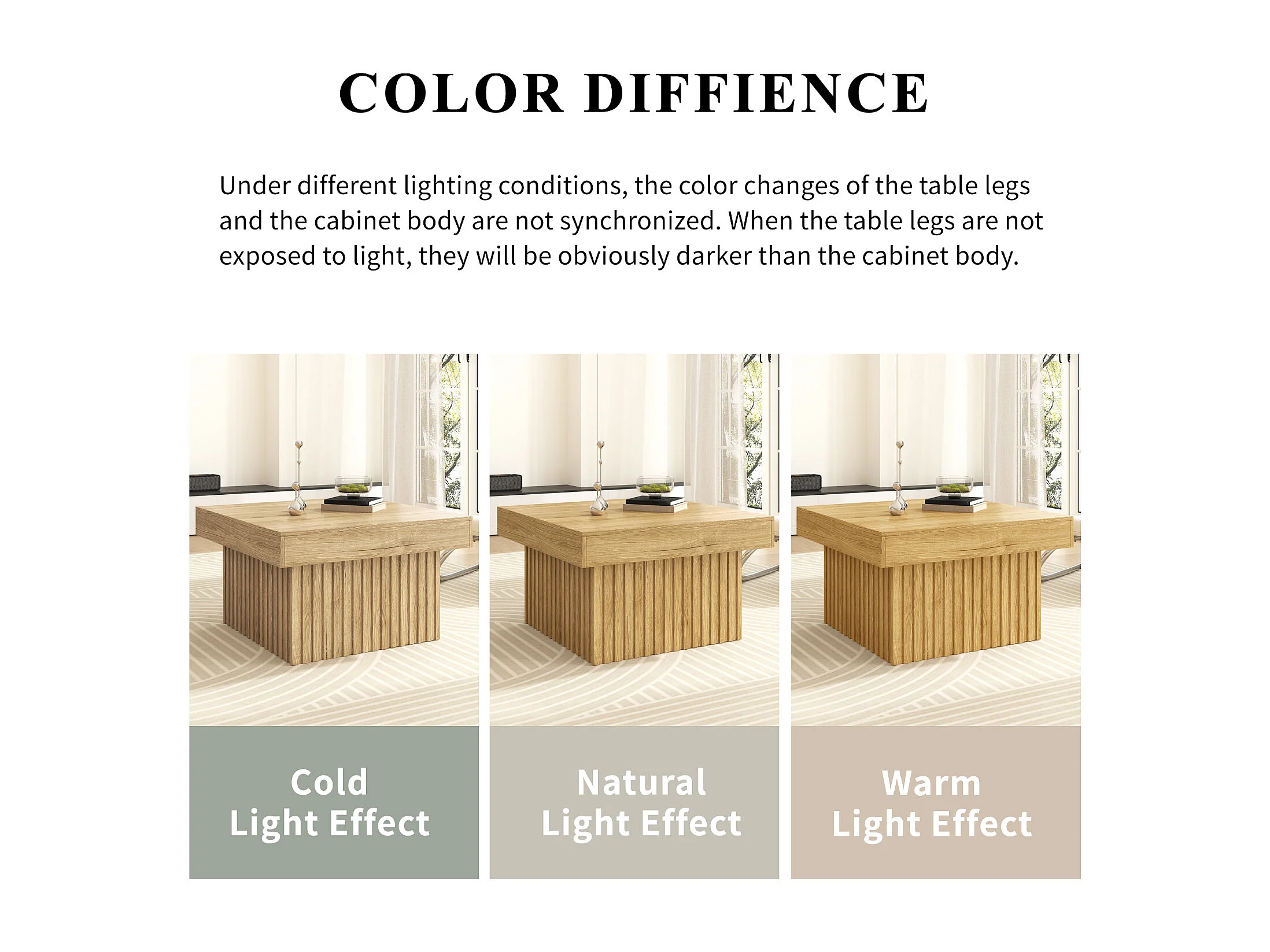 Table basse carrée avec décor à rayures gravées - pour salon - Couleur bois - 79 x 79 x 46 cm