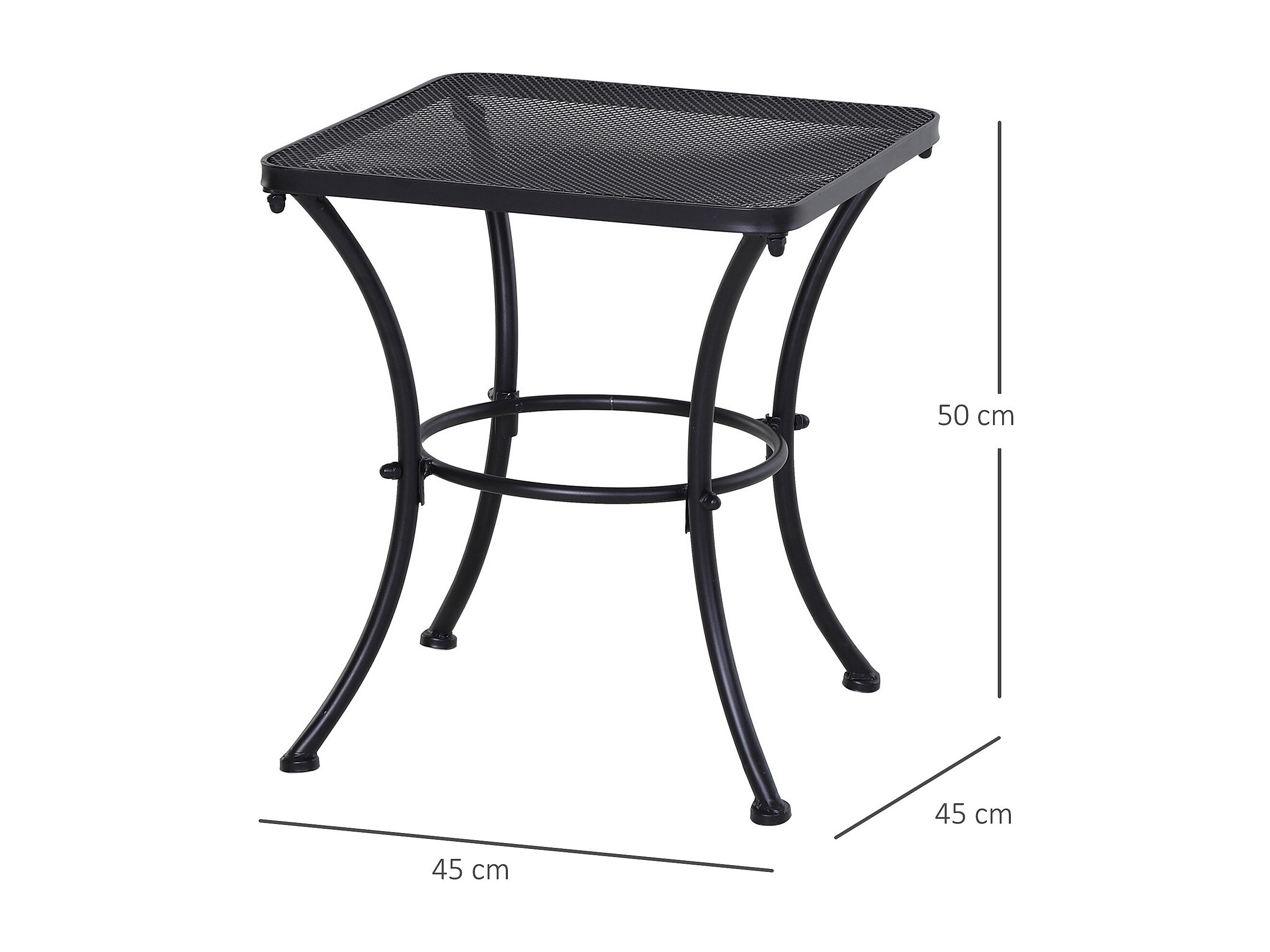 Table basse carrée bistro de jardin dim. 45L x 45l x 50H cm piètement arqué plateau maillé métal époxy anticorrosion noir