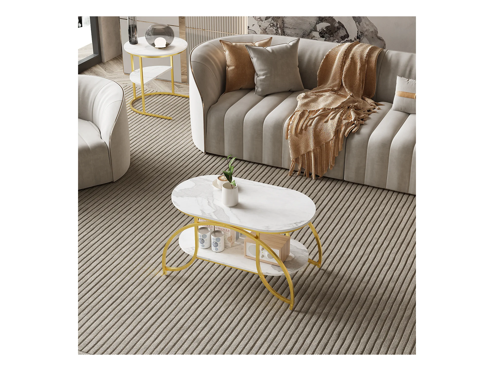Table basse gigogne carrée en marbre blanc avec structure dorée – Ensemble moderne 2 pièces