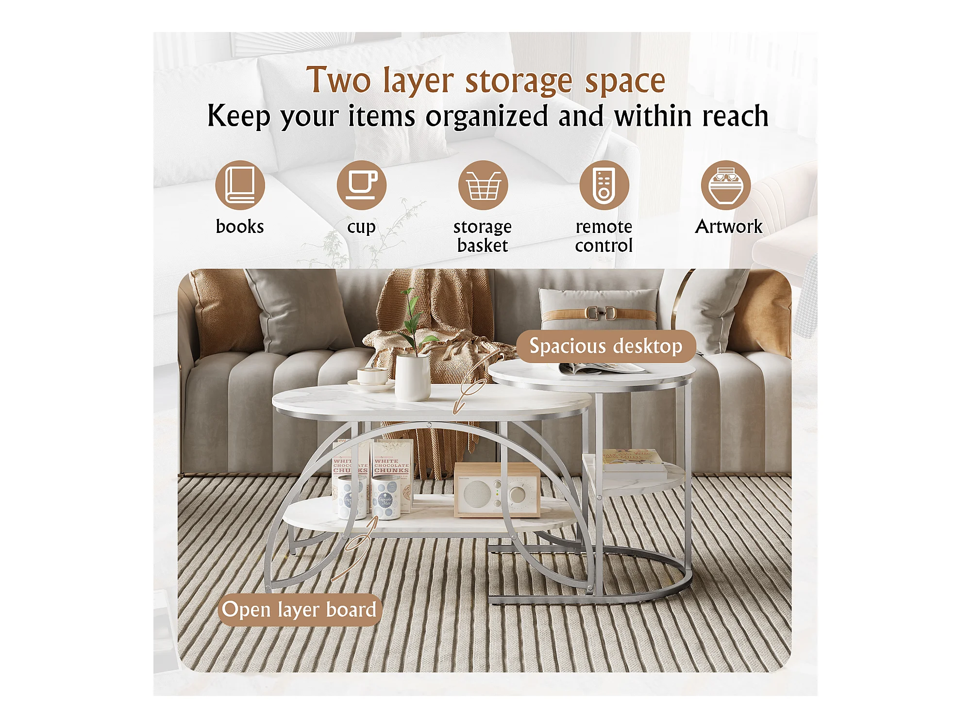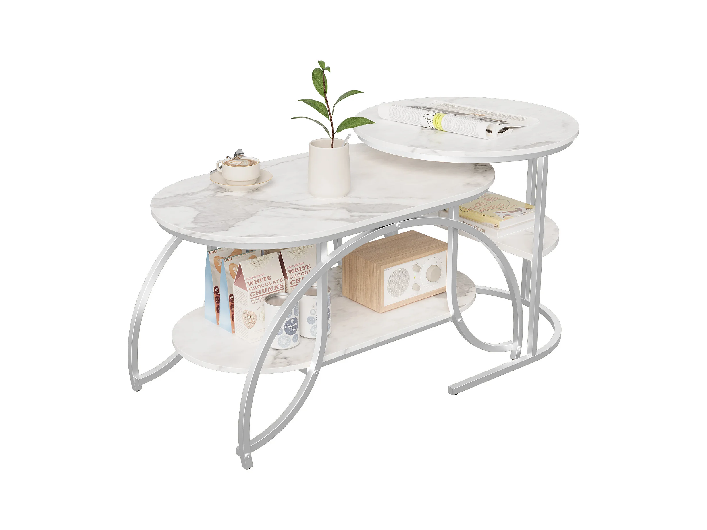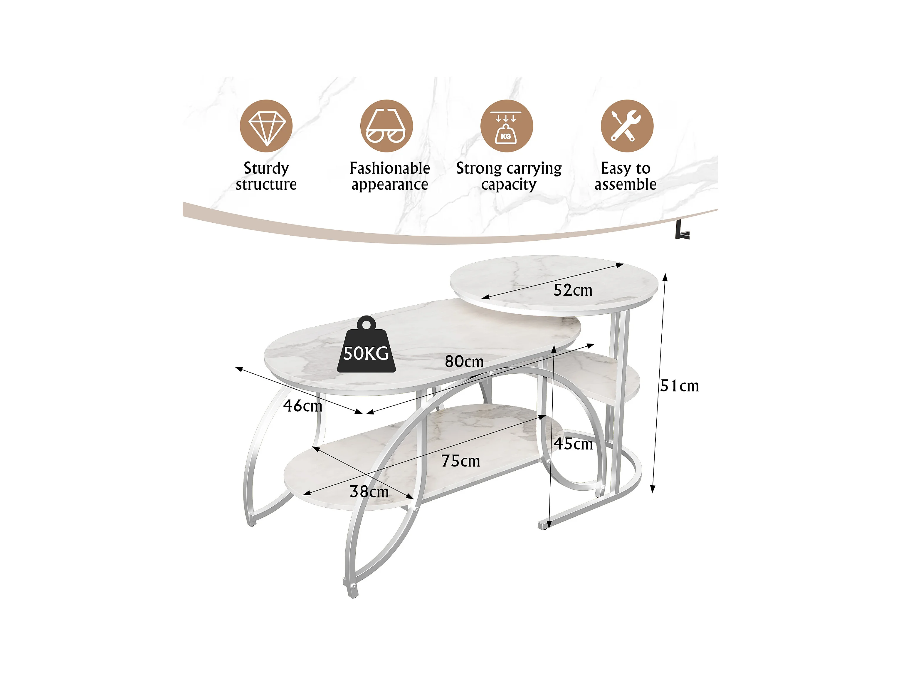Table basse gigogne carrée en marbre blanc avec structure dorée – Ensemble moderne 2 pièces