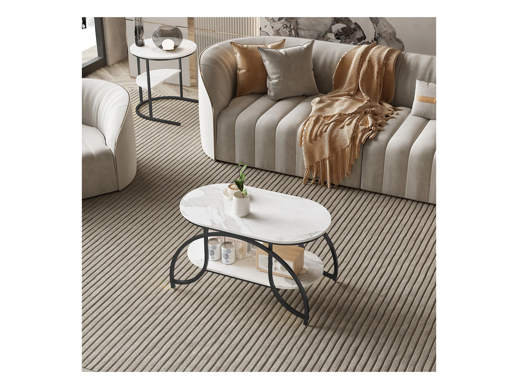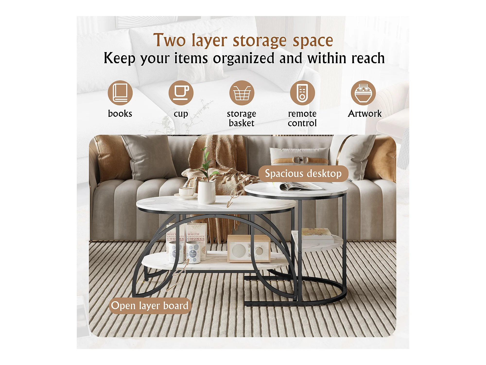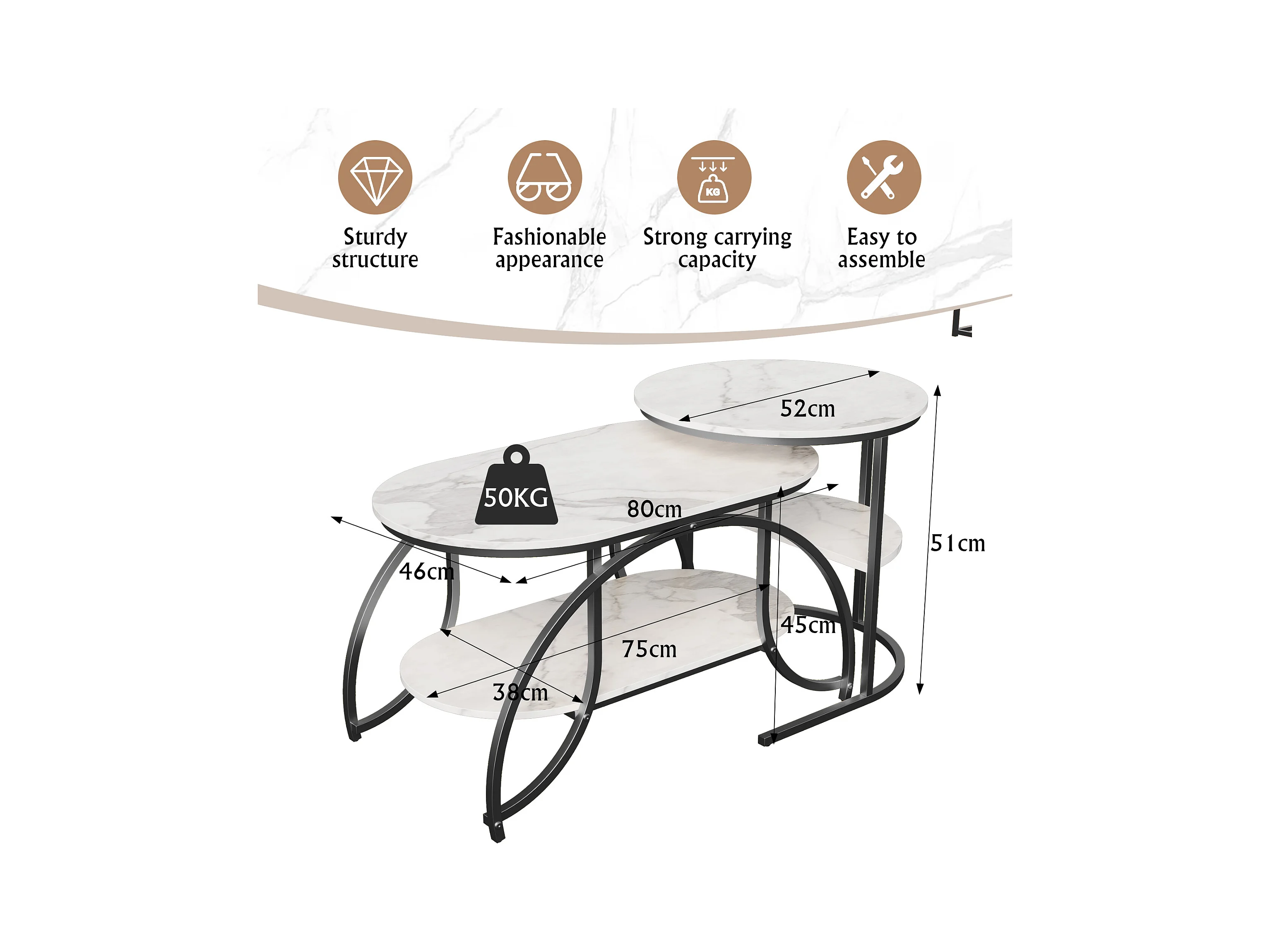 Tables basses gigognes carrées en marbre blanc avec cadres noirs - Ensemble moderne deux pièces