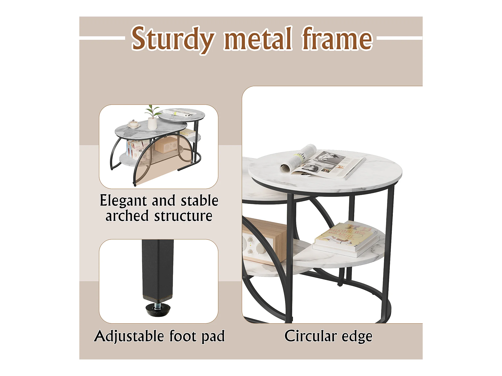 Table basse gigogne carrée en marbre blanc avec structure dorée – Ensemble moderne 2 pièces