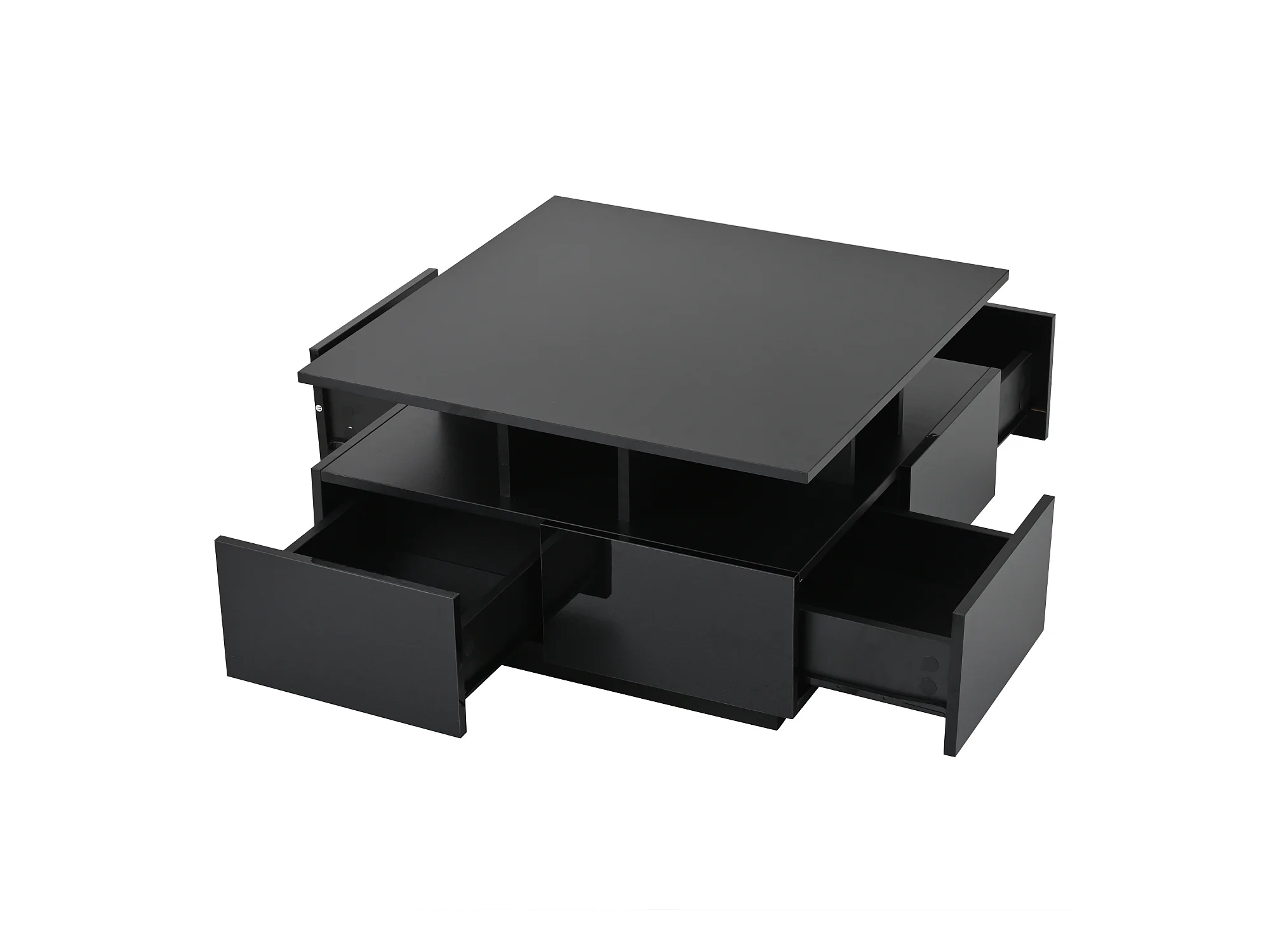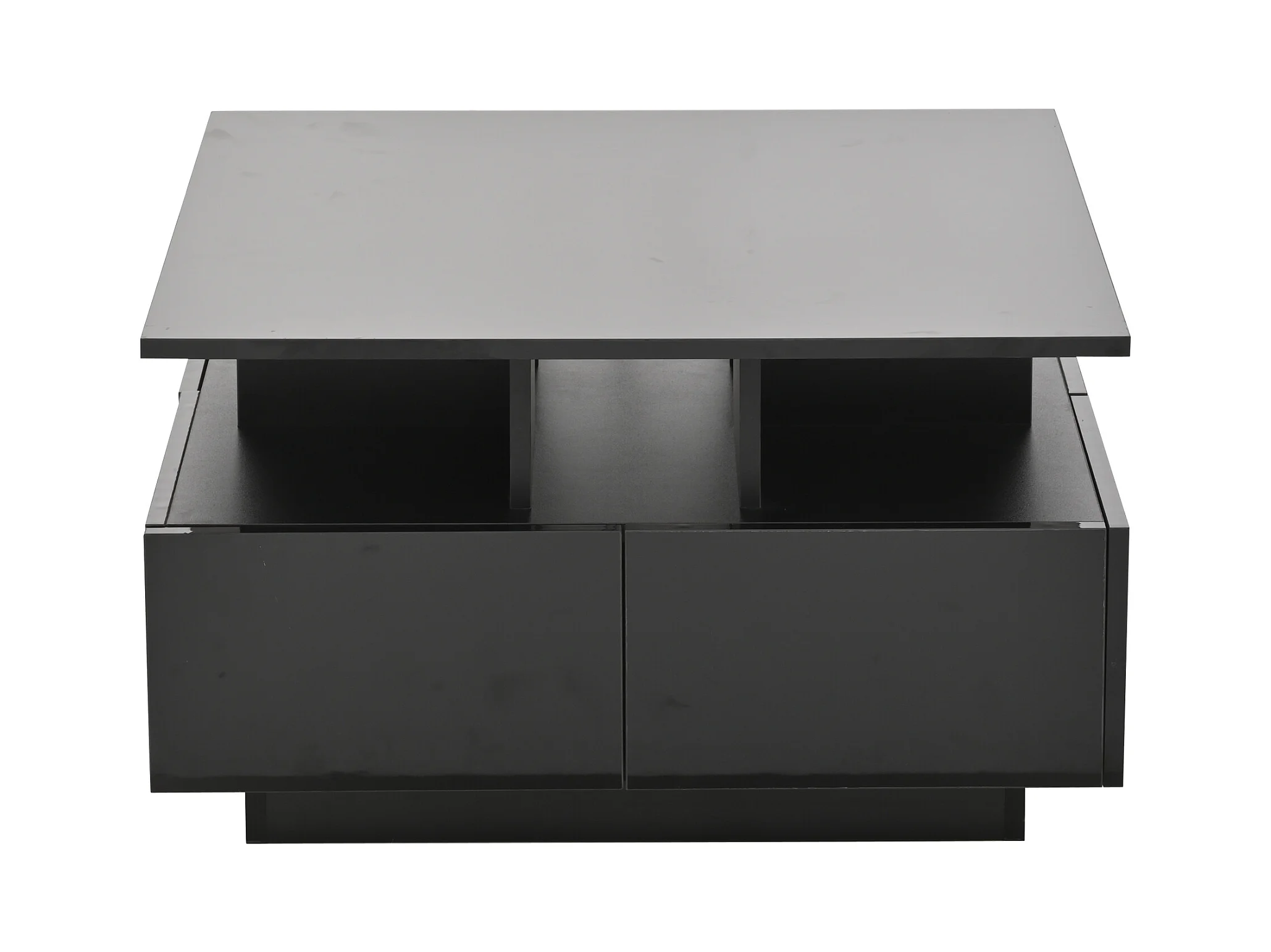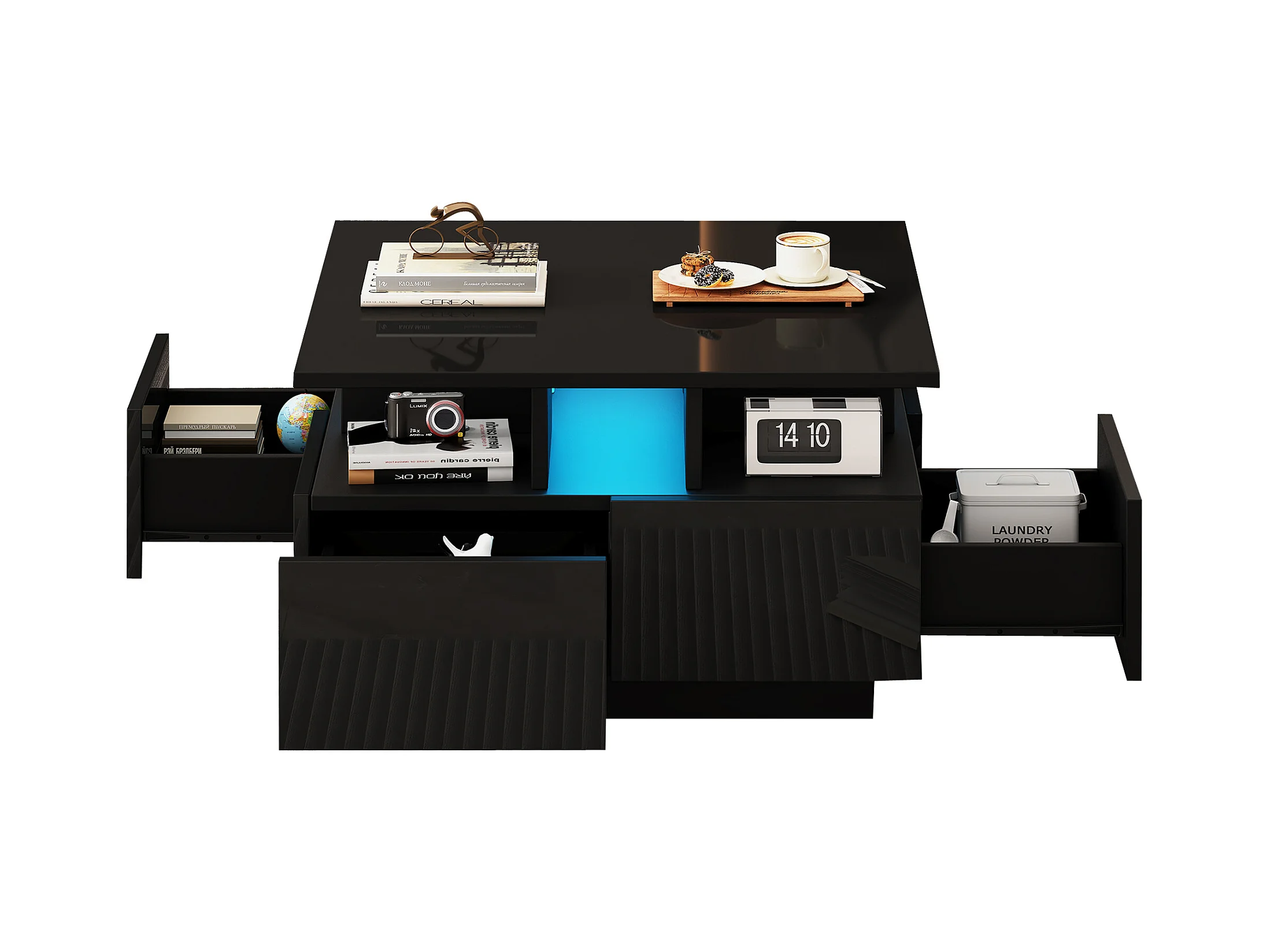 Table basse carrée noire avec 4 tiroirs de rangement et éclairage LED - pour salon