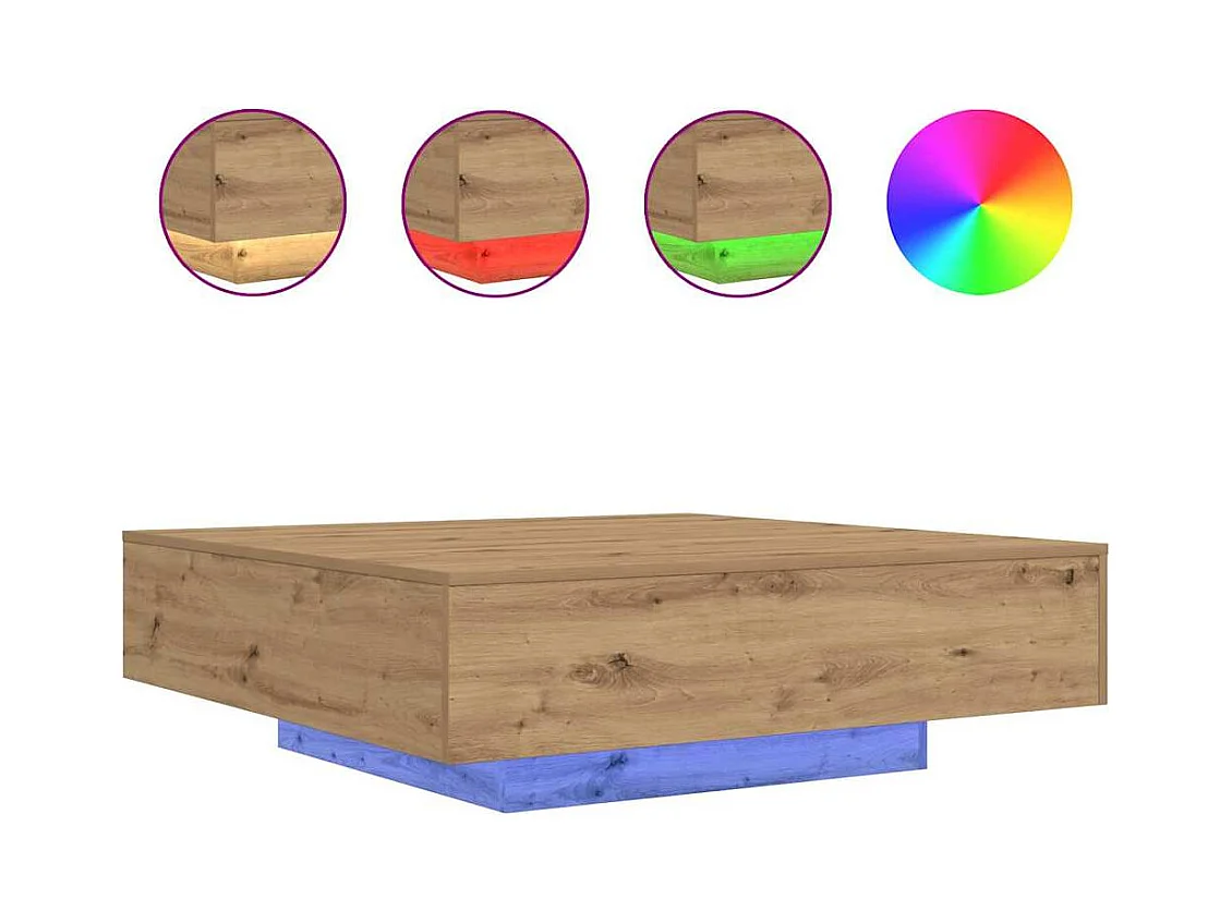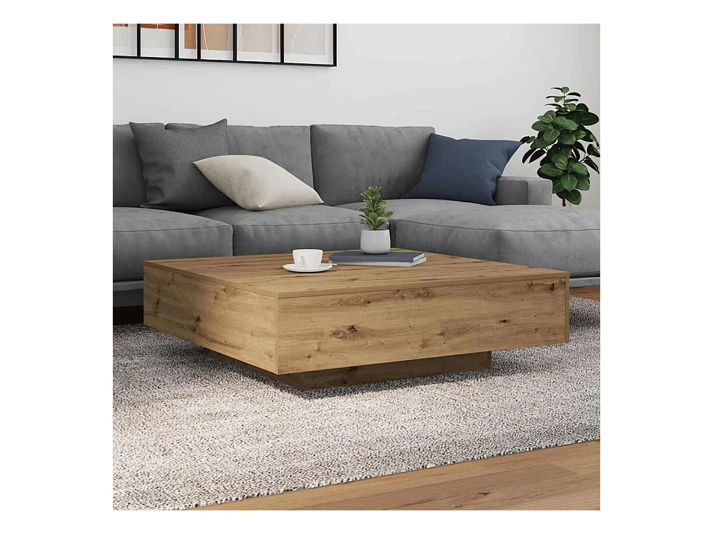 Table basse chêne artisanal 100x100x35 cm bois d'ingénierie