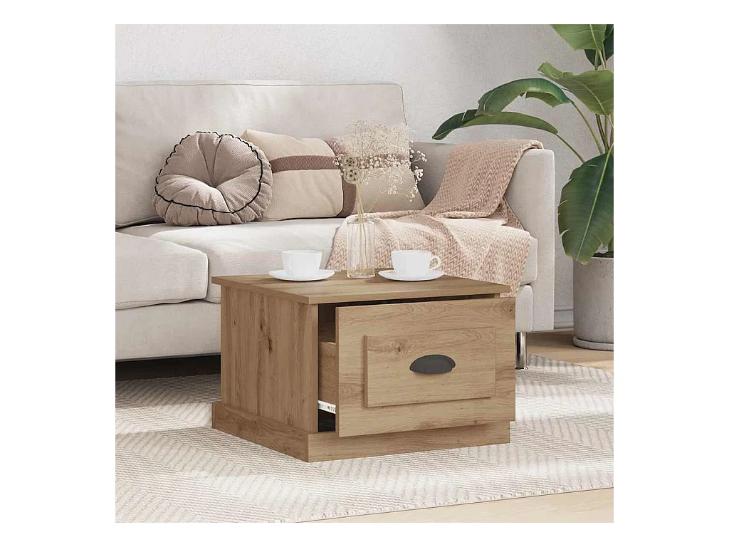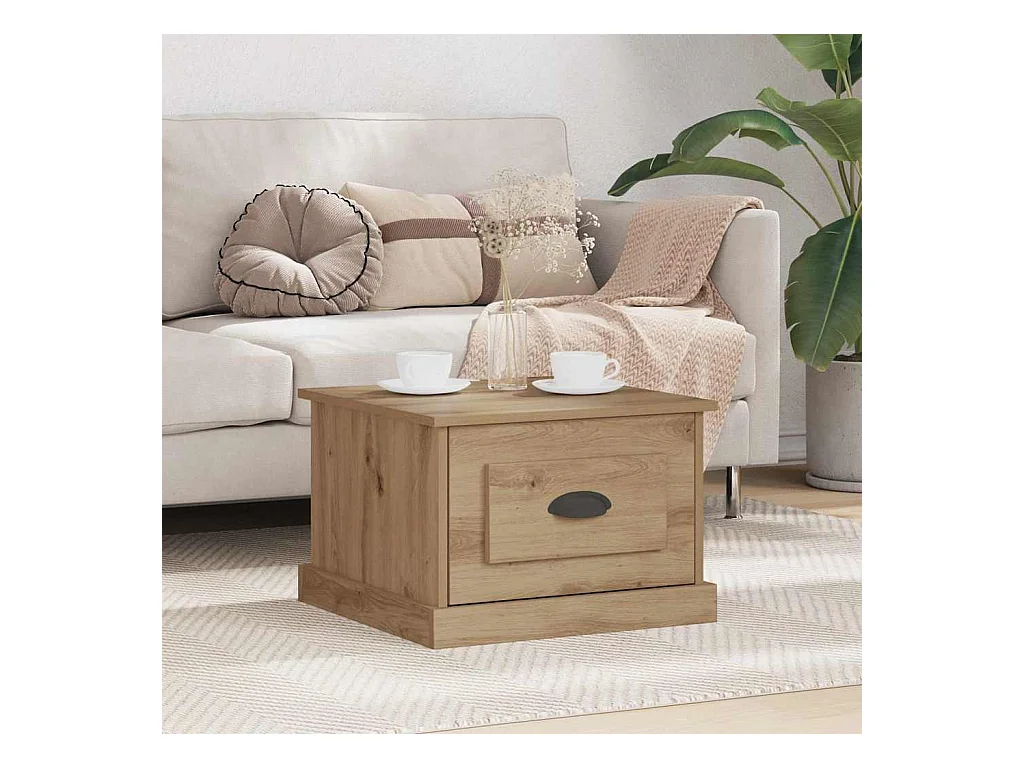 Table basse chêne artisanal 50x50x36 cm bois d'ingénierie