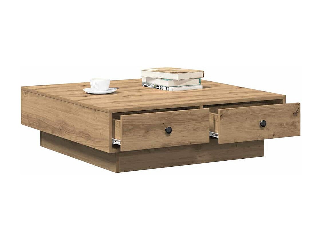 Table basse chêne artisanal 90 x 90 x 28 cm Bois d'ingénierie