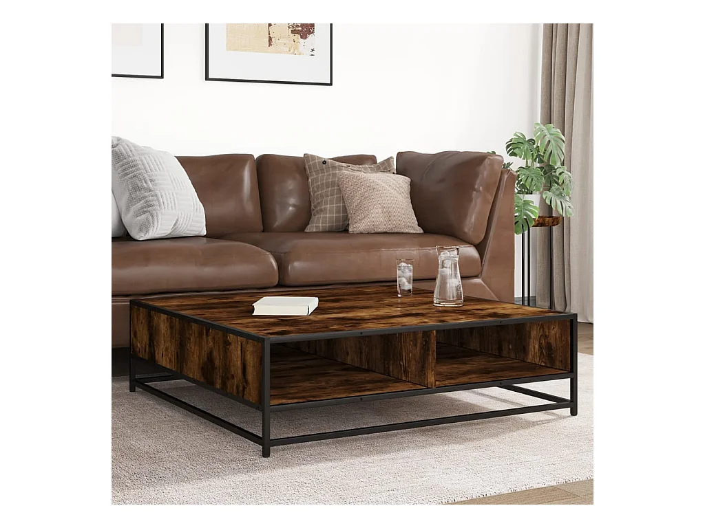 Table basse chêne fumé 100x100x30 cm bois d'ingénierie et métal