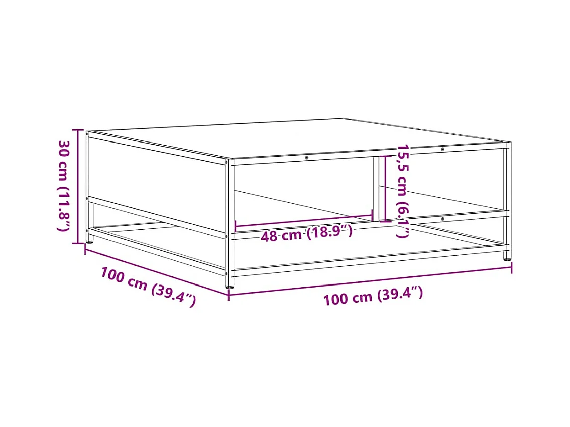 Table basse chêne sonoma 100x100x30 cm bois d'ingénierie/métal