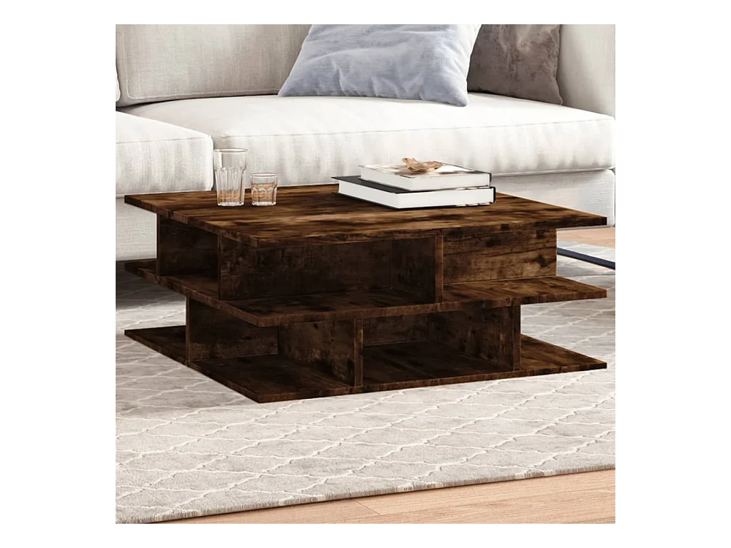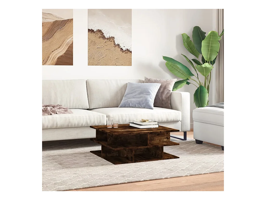 Table basse chêne fumé 80x80x40 cm bois d'ingénierie