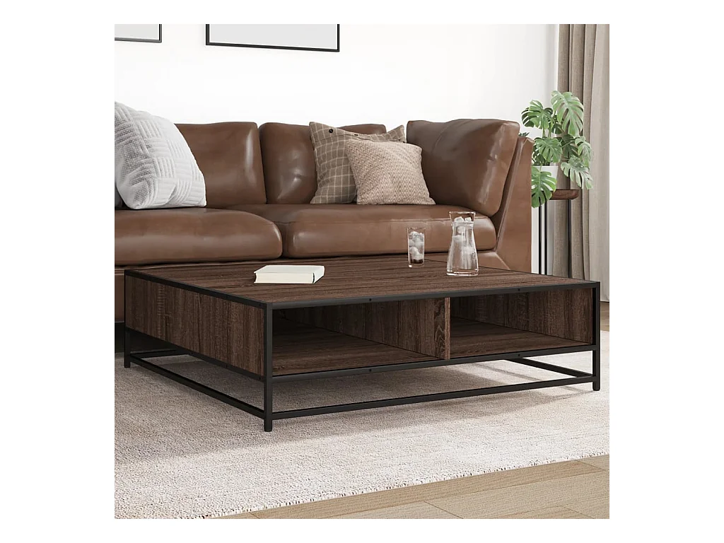 Table basse chêne fumé 100x100x30 cm bois d'ingénierie et métal