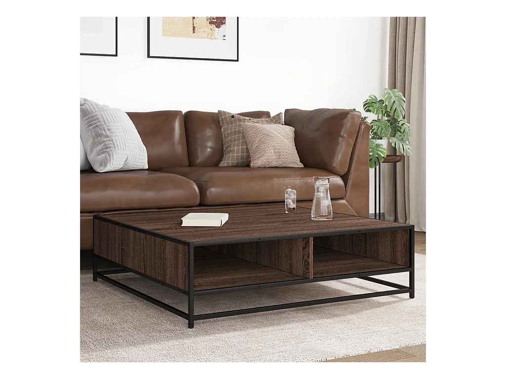 Table basse chêne marron 100x100x30 cm bois d'ingénierie/métal