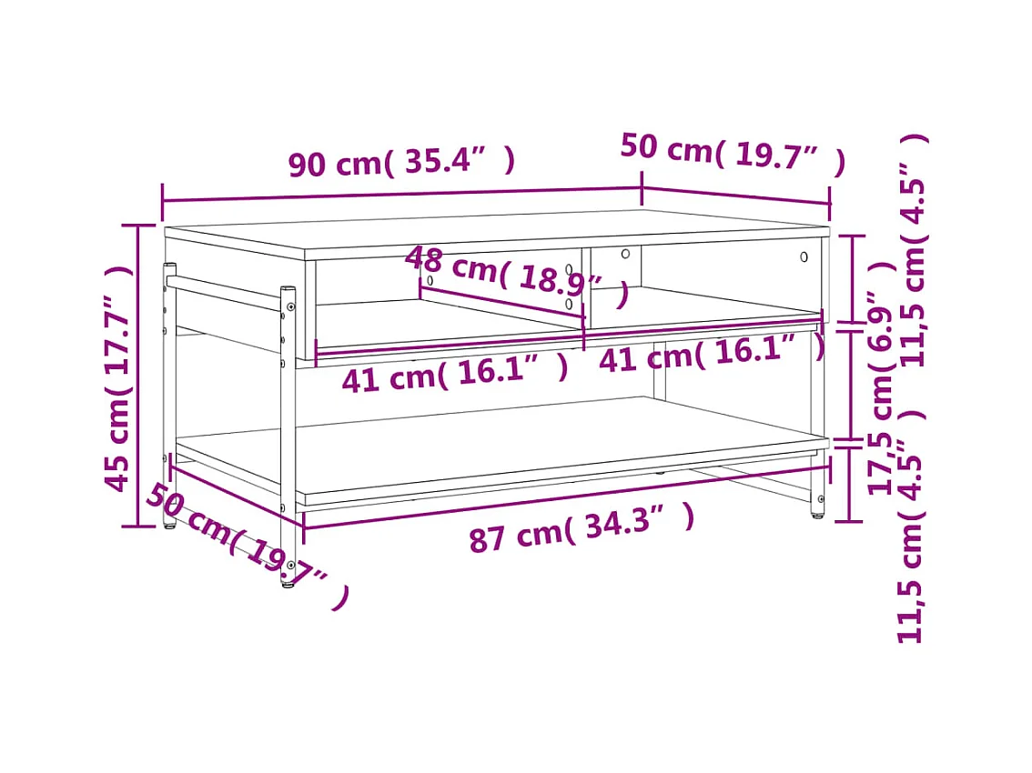 Table basse chêne sonoma 90x50x45 cm bois d'ingénierie