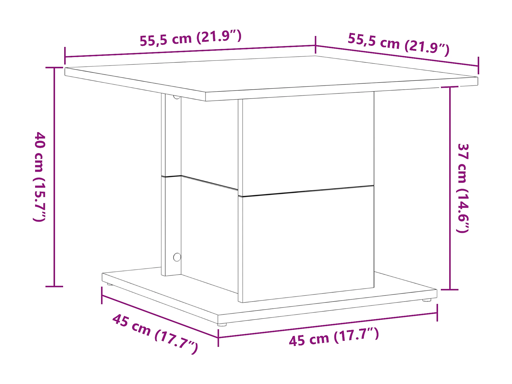 Table basse noir 55,5x55,5x40 cm bois d'ingénierie