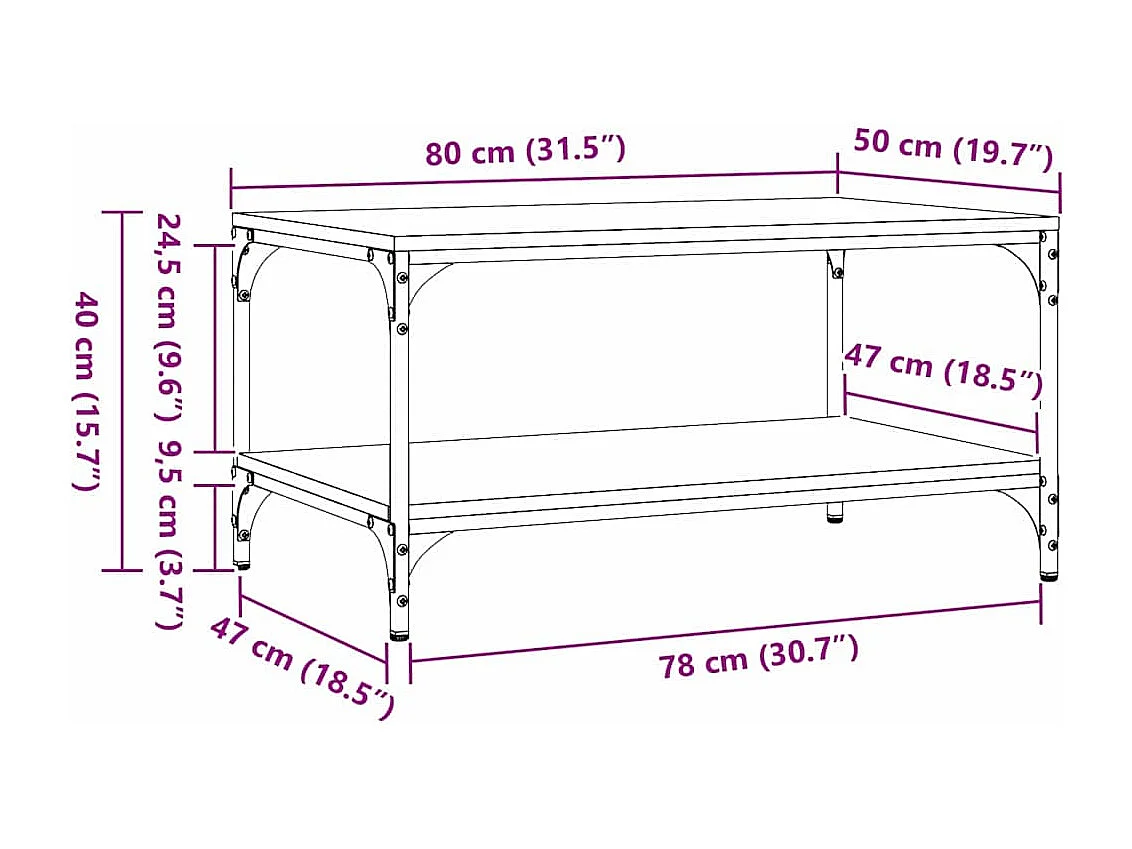 Table basse Chêne noir 80 x 50 x 40 cm Bois d'ingénierie