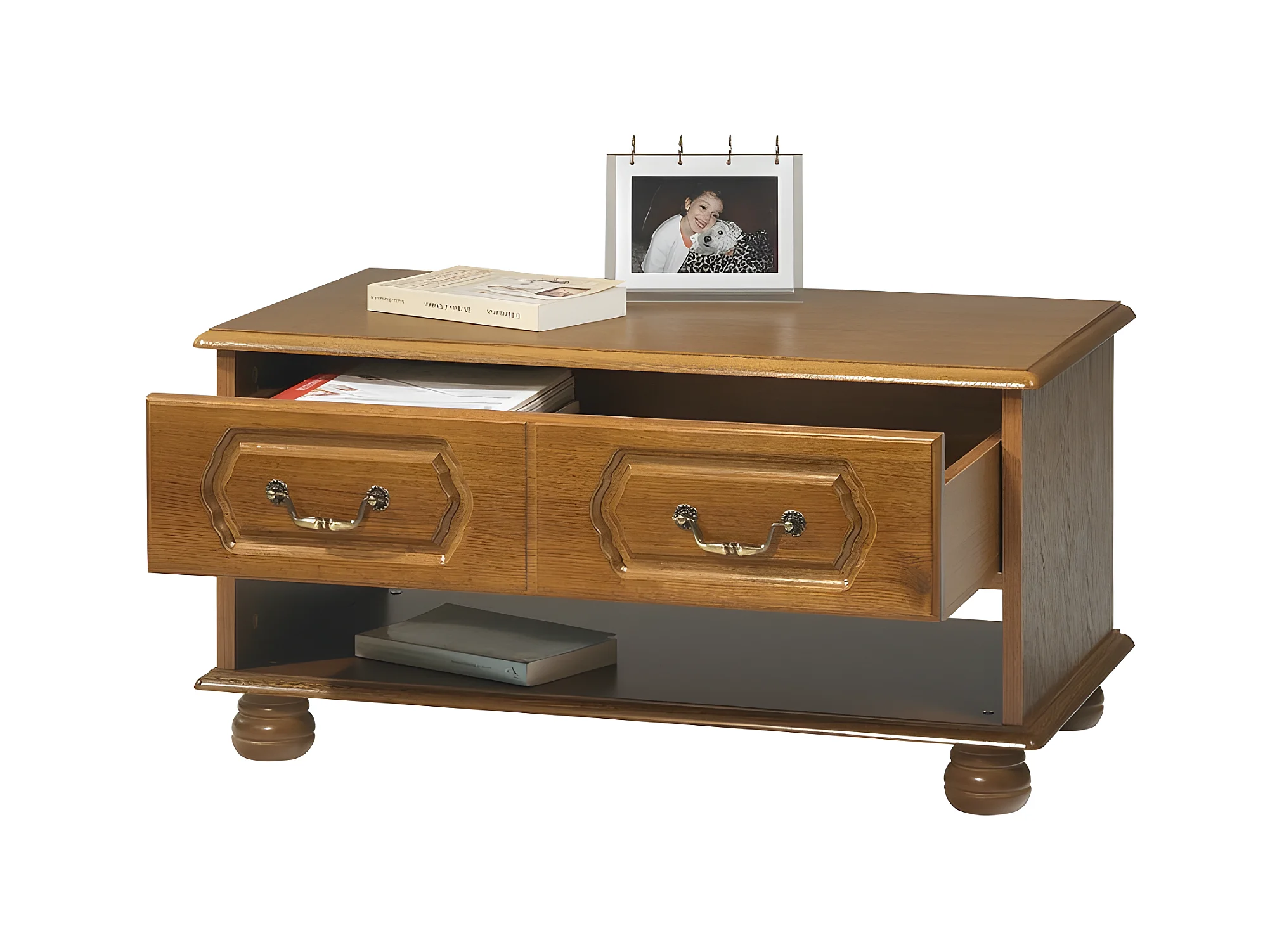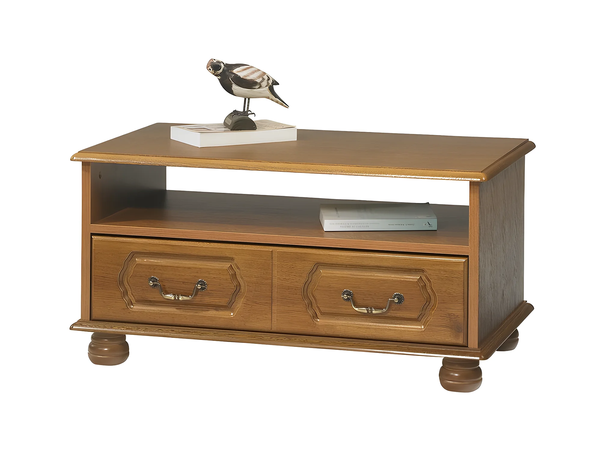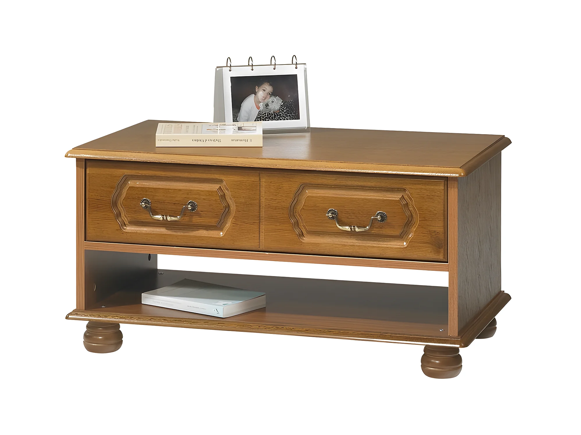 Table Basse Chêne Rustique Rectangle 2 Tiroirs 1 Niche L 82.4 H 42 P 46.5 cm