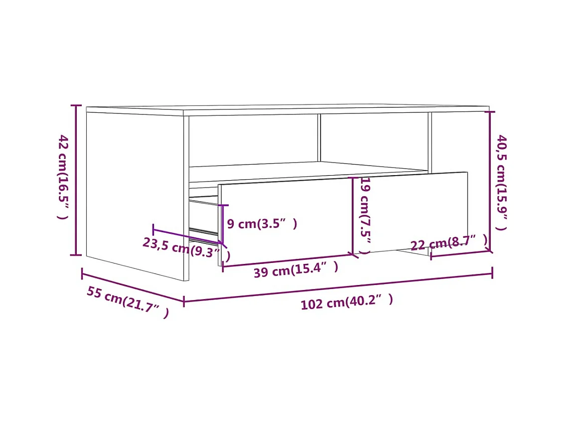 Table basse Chêne sonoma 102x55x42 cm Aggloméré