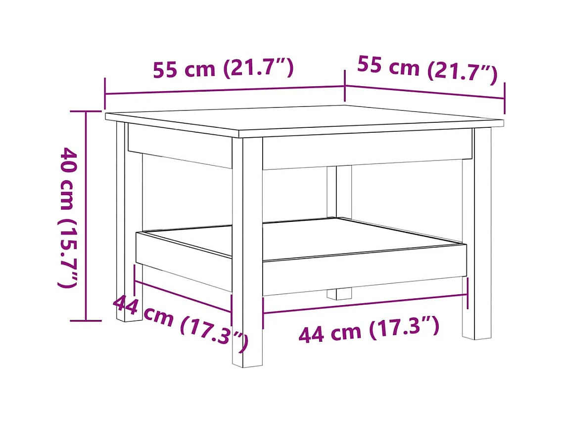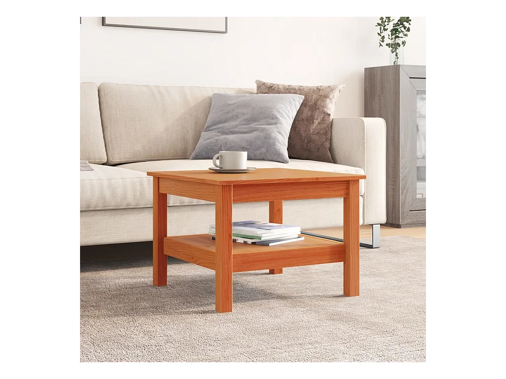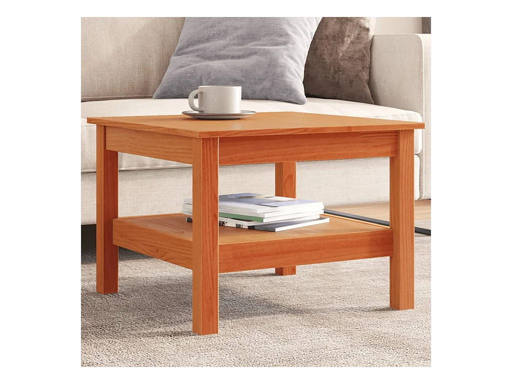 Table basse cire marron 55x55x40 cm bois massif de pin